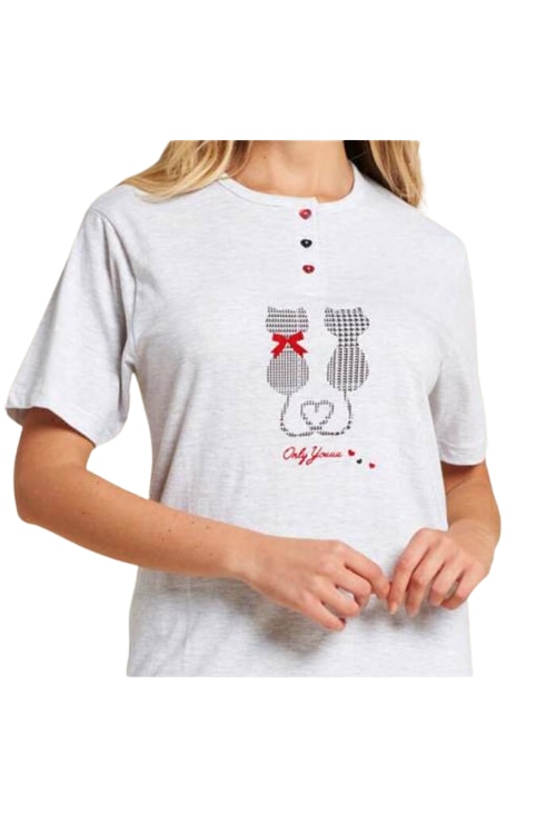 Alis - Pijama dama, 2 piese, tricou maneca scurta, pantaloni scurti, only you, Alb