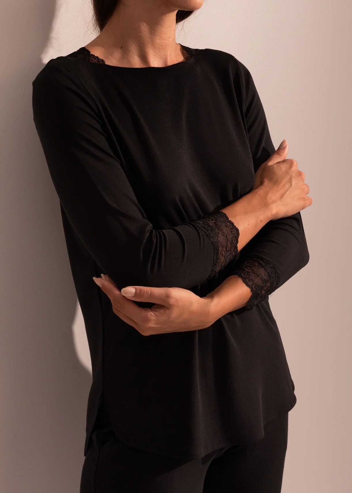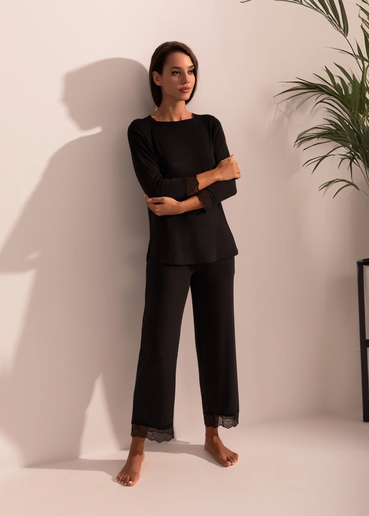 Pijama Dama Alma Modal 7/8, Negru