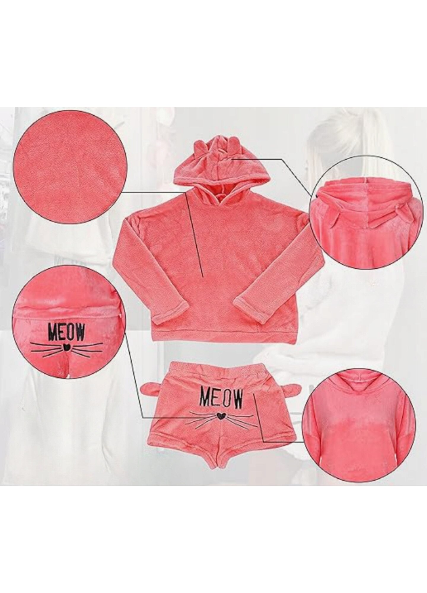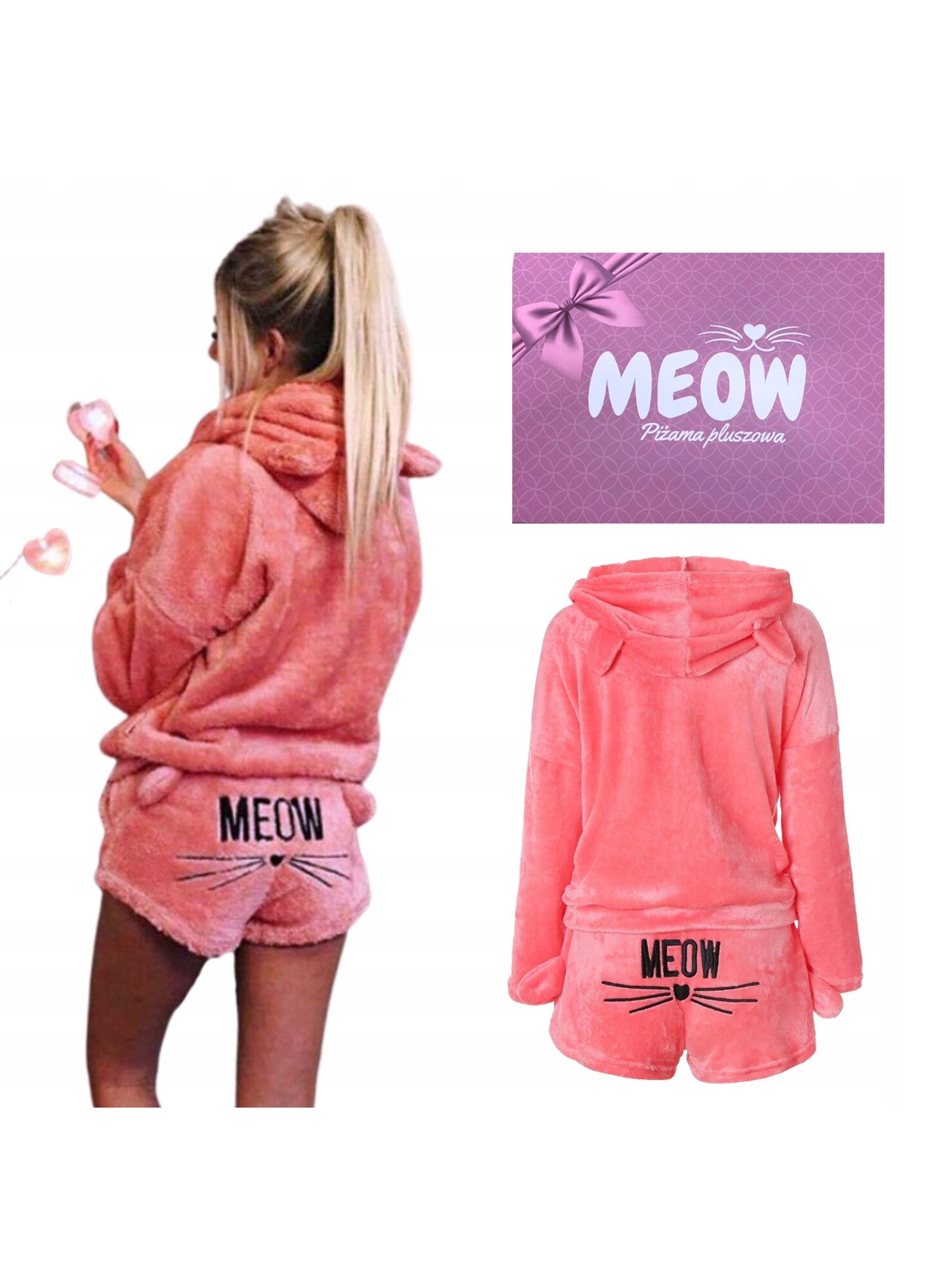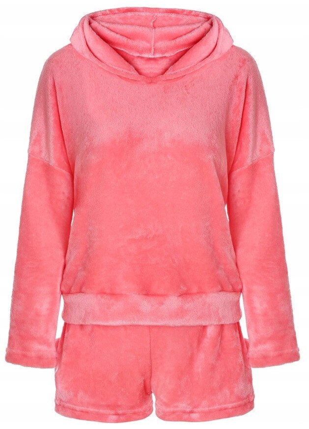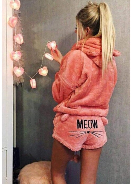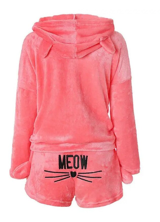 Pijama dama, HomeDesign, hanorac si pantaloni scurti, plus, roz, motiv pisica, M INTL