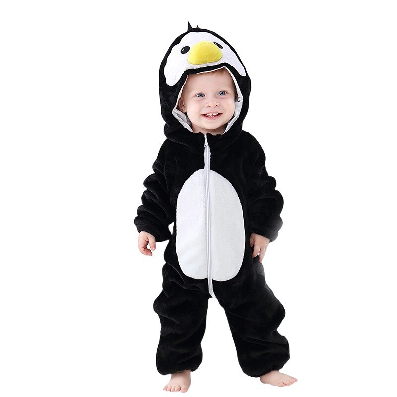 Pijama kigurumi pentru bebelusi tip salopeta din material moale si pufos 100cm, Negru/Alb