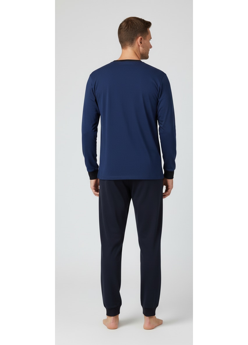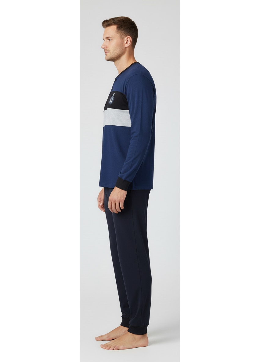 embody - Pijama lunga bumbac pentru barbati, bluza bleumarin, pantaloni negru 11625, Bleumarin