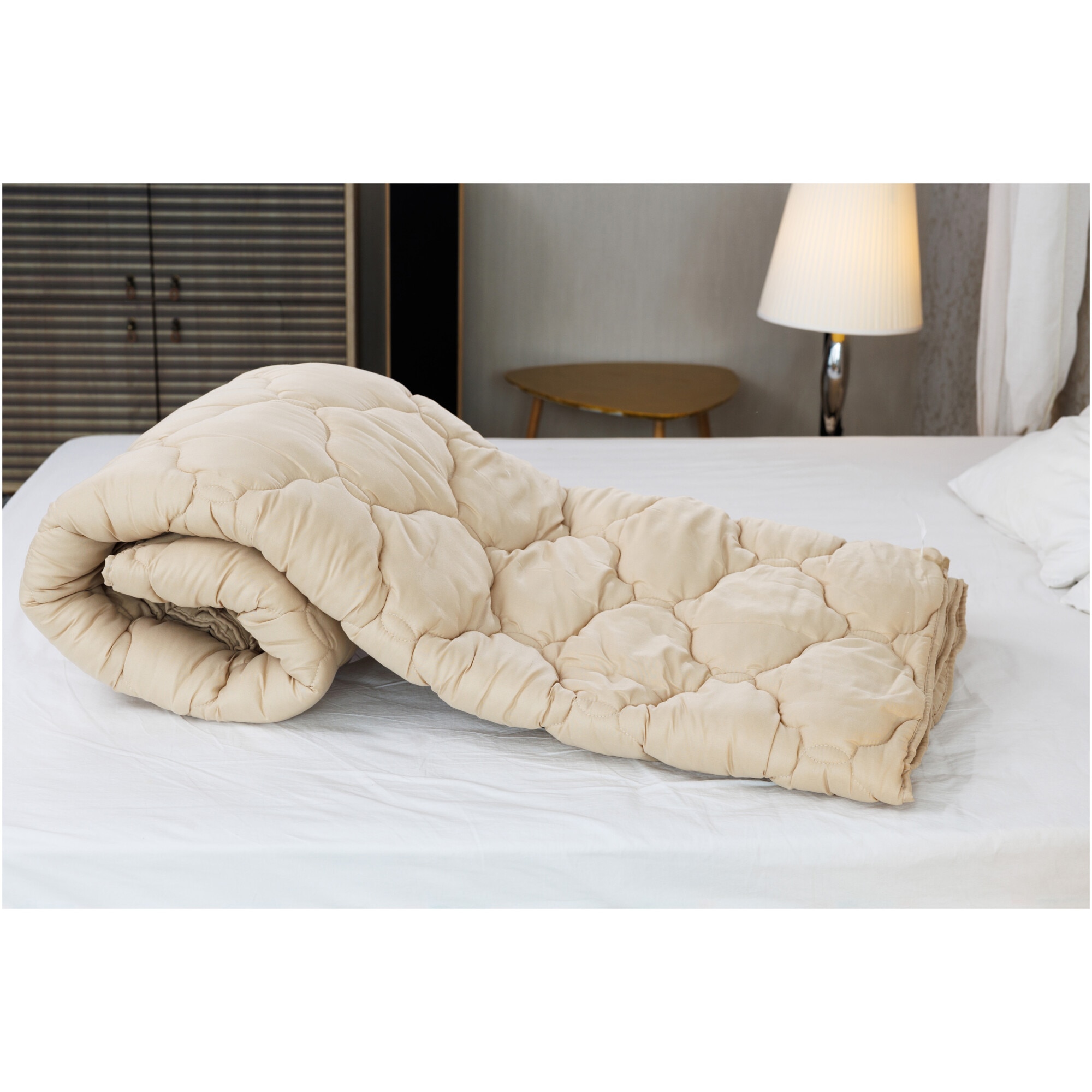 Pilota matlasata Soft Touch Home Still, 140x200 cm, 300 g/mp, microfibra, umplutura vata siliconica, nivel mediu de caldura, bej
