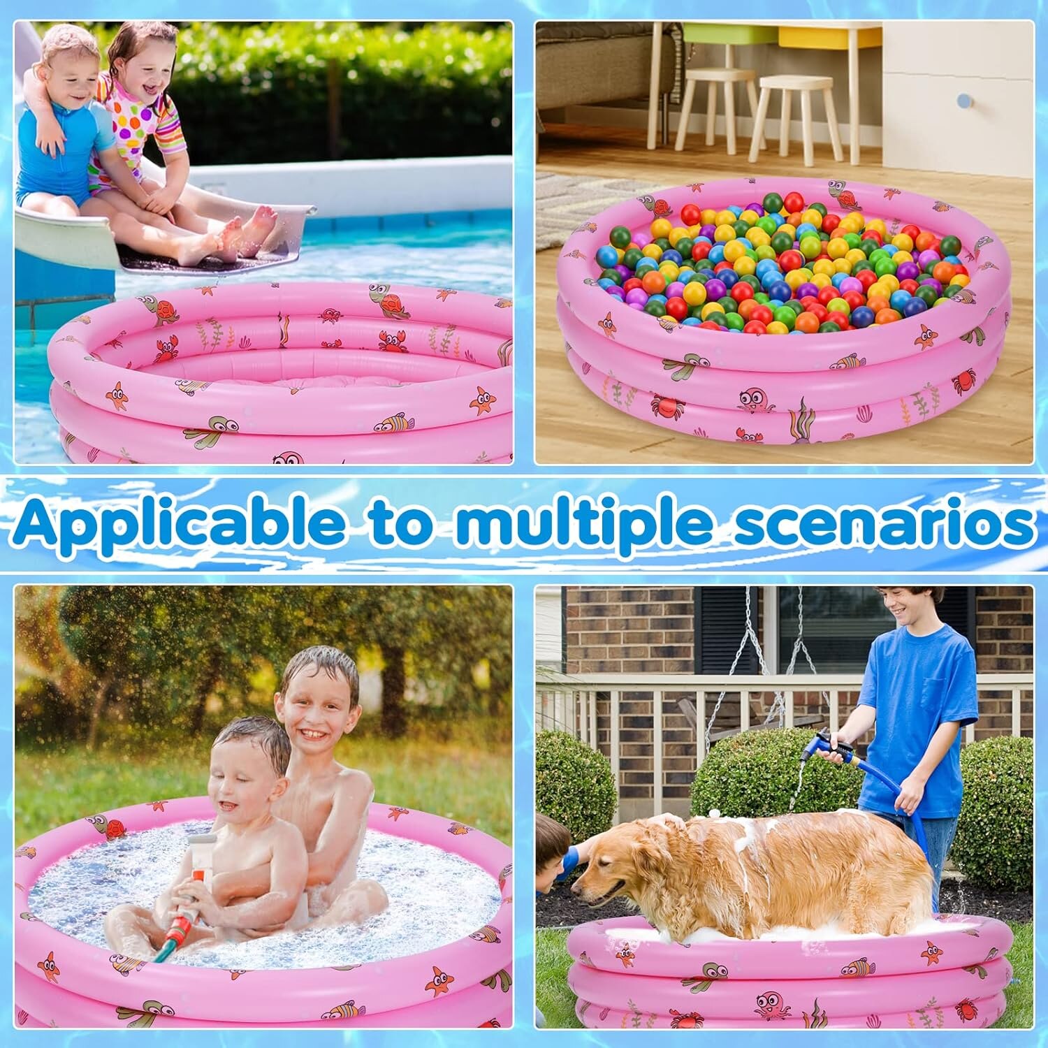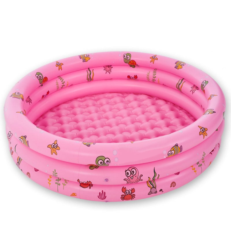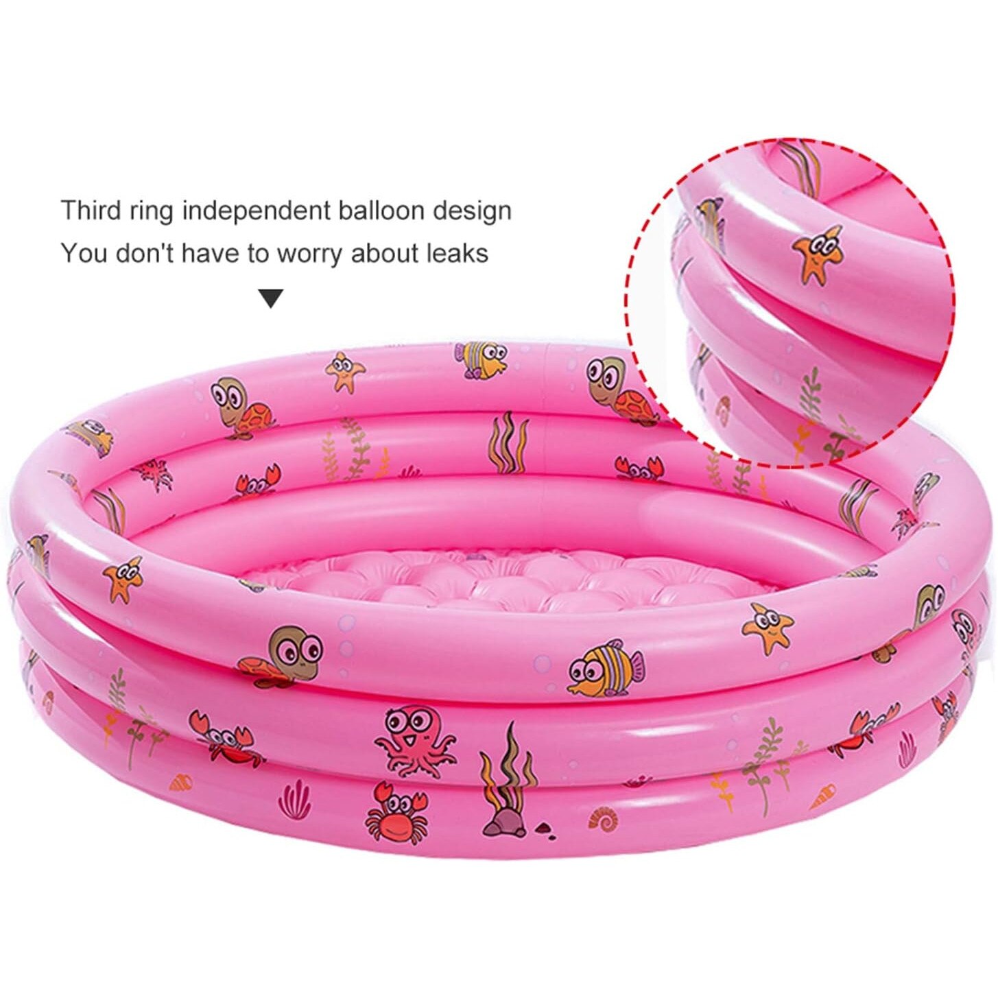 Piscina gonflabila pentru copii Joyful Box, Baza dubla moale, 90 cm, Rotunda, Roz