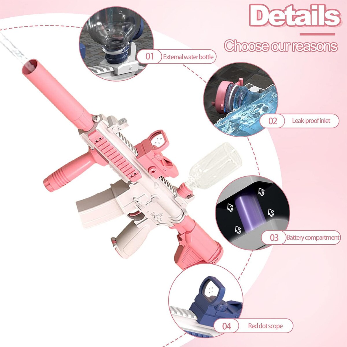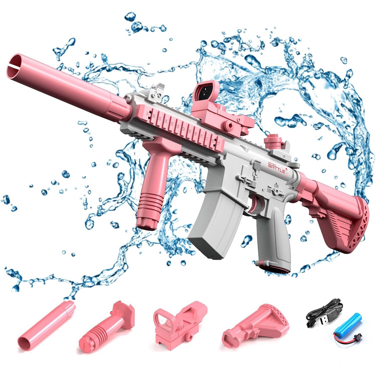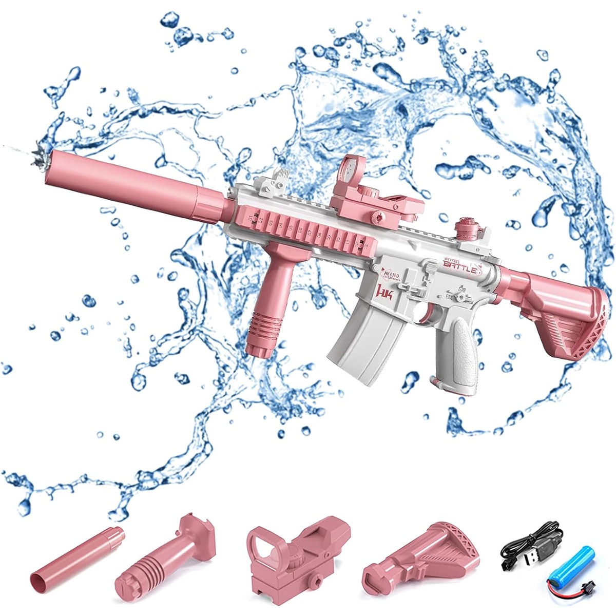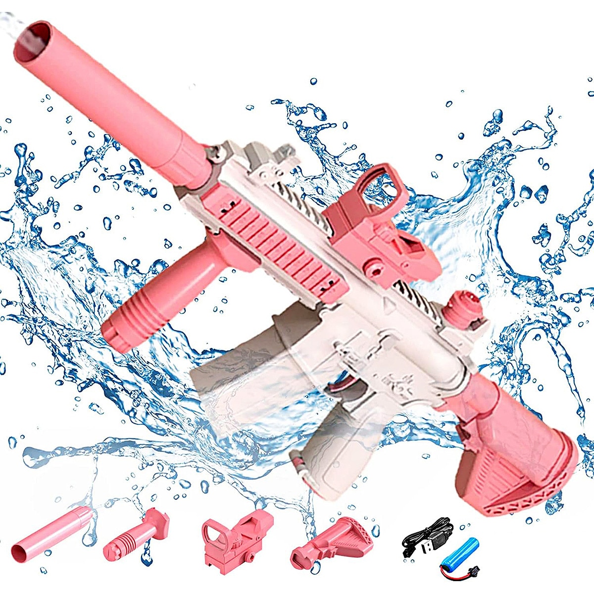 Pistol cu apa electric YOUKUKE, M416 Pistol cu apa automat cu un singur buton, incarcare USB, Pistol cu apa de jucarie pentru copii, baieti/fete si adulti, Petrecere la piscina de vara, Plaja, Utilizare in aer liber, Roz