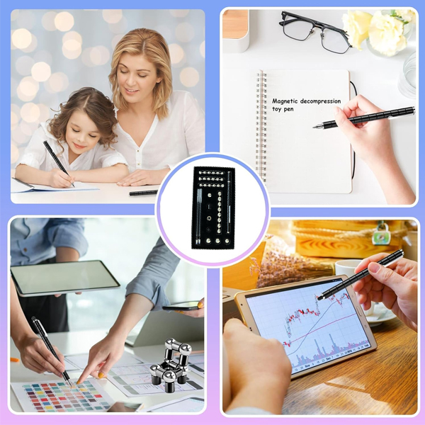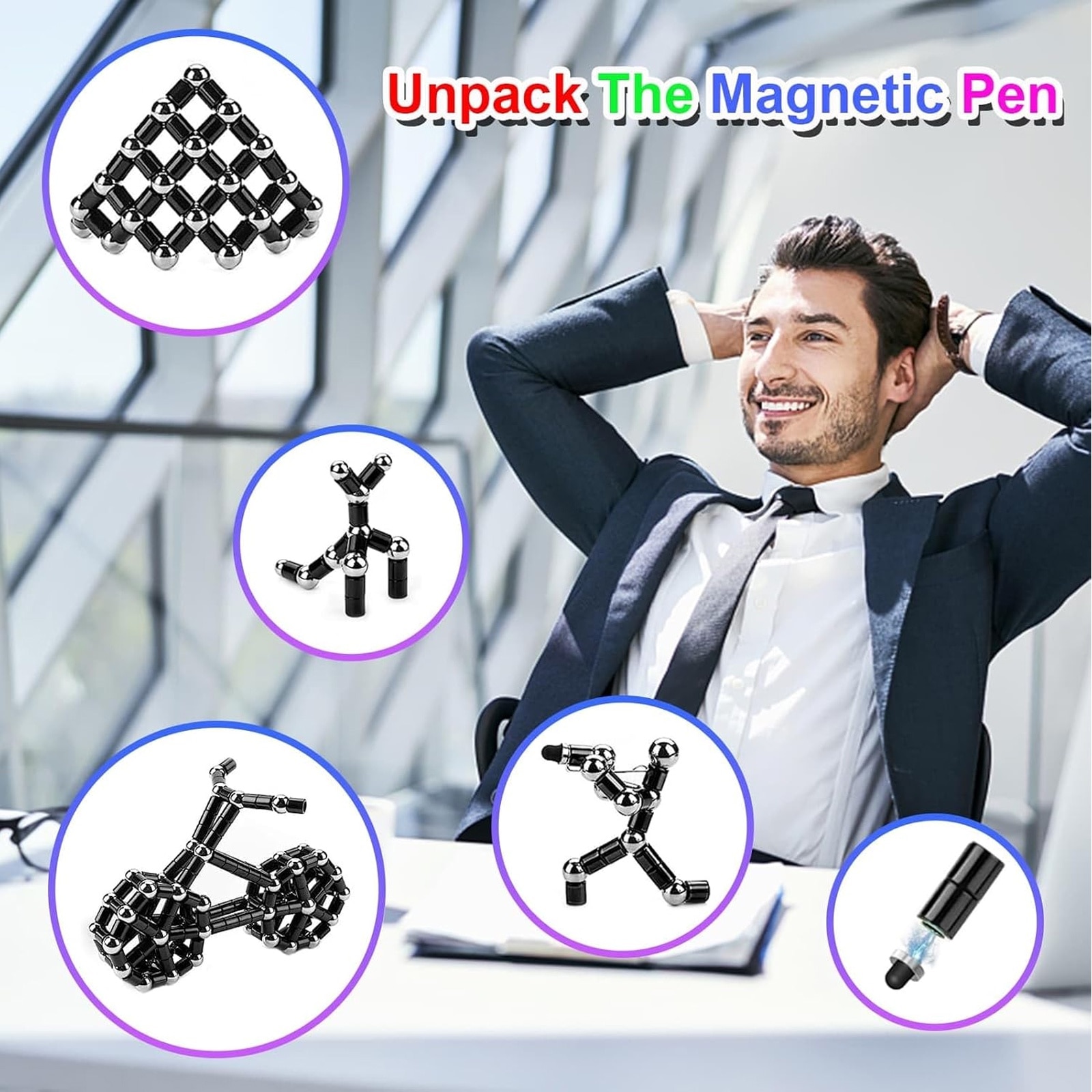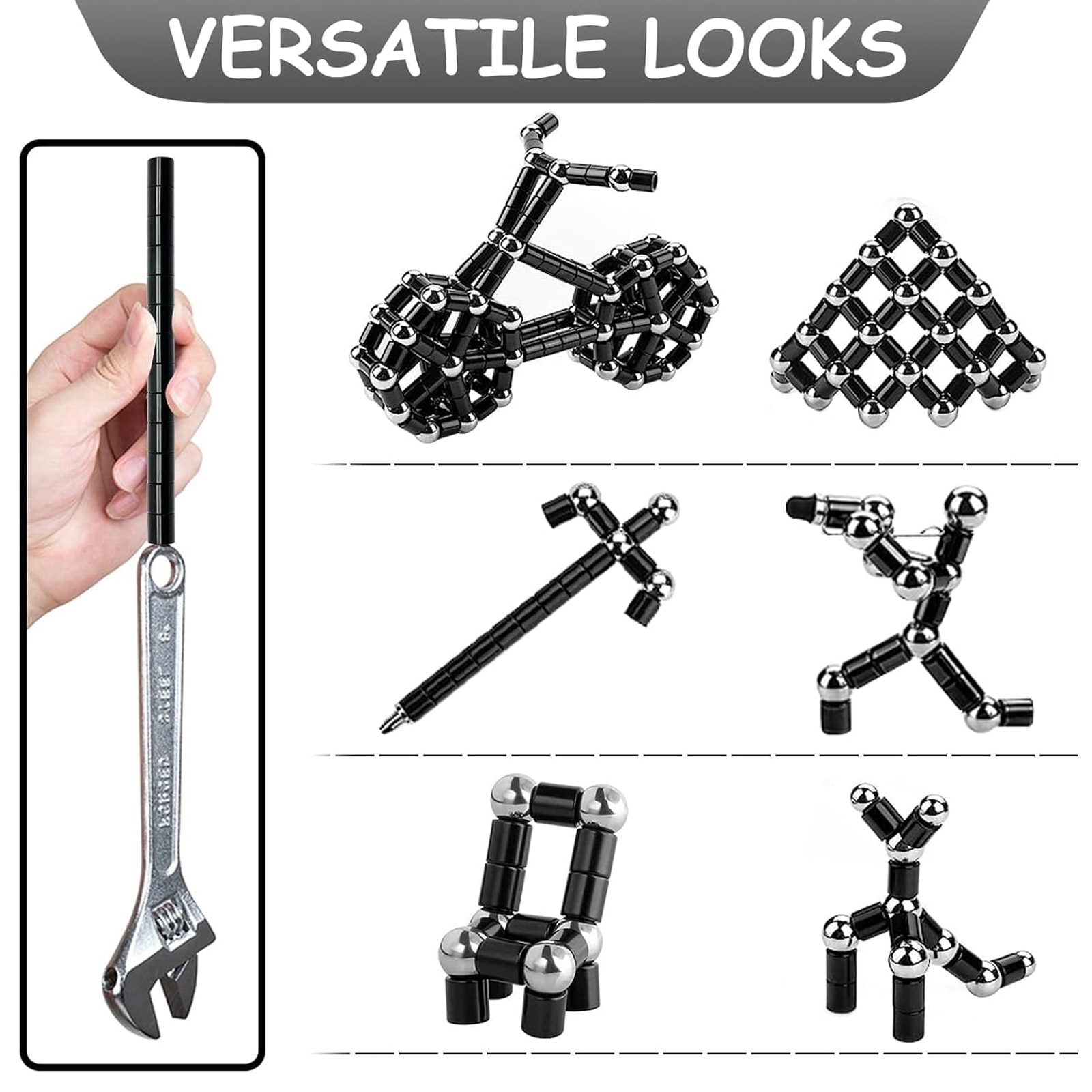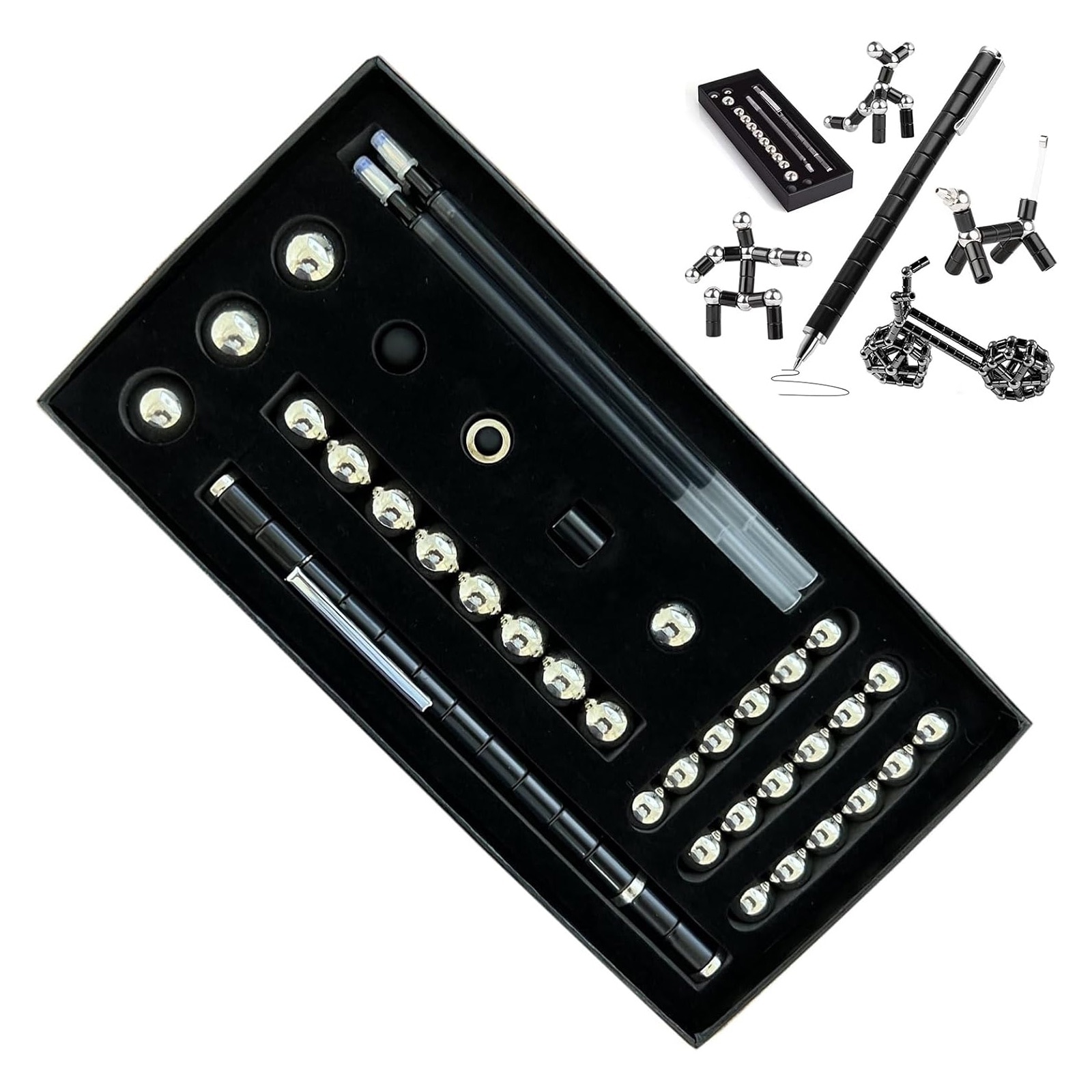 Pix Multifunctional Cu Magnet, SINBINTA, Set Pix Modular Magnetic, Cu 30 bile magnetice, 14 inele magnetice, 2 stylus-uri si 5 mine, Schimba forma, Scriere neteda si uscare rapida, Design ergonomic, Metal, 18x9x2cm, Negru