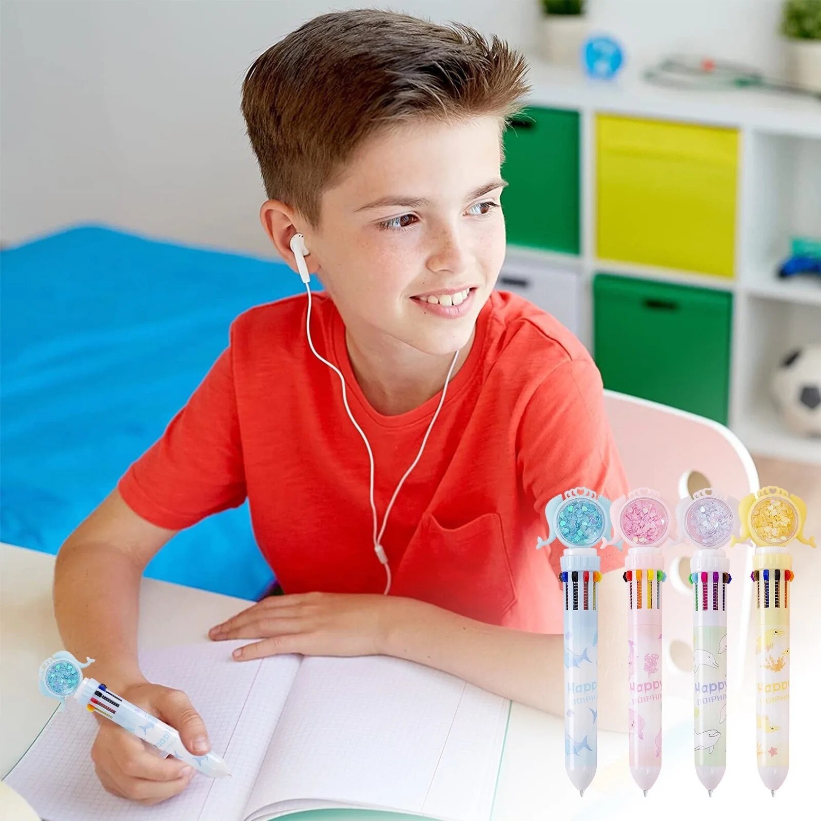 Pixuri set 10 culori, Bear School Supplies, pixuri cu presiune, design delfin, 16x5x3cm