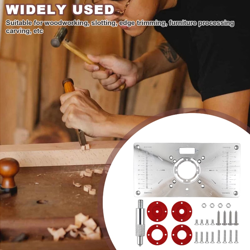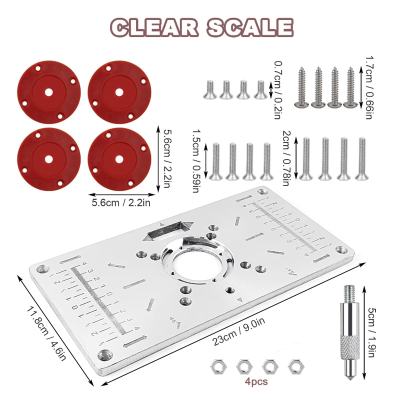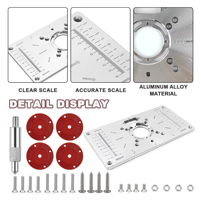 Placa de insertie pentru masa de frezat Autocise, aluminiu, cu inele de calibrare, rosu, 235x120mm
