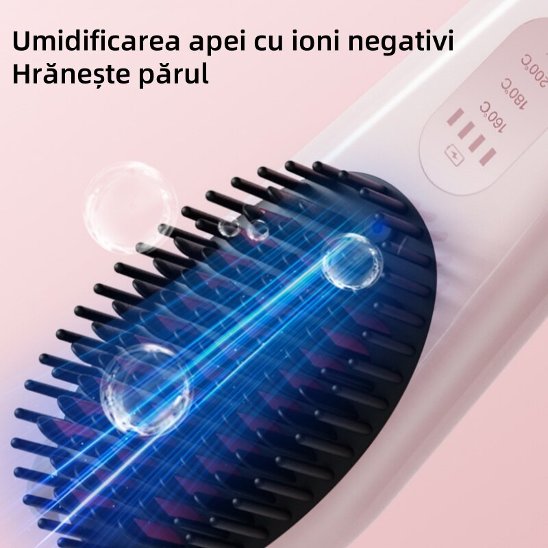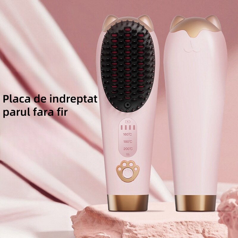 Placa de par, 2 in 1, 200 ° C, 50W, Ion negativ, control al temperaturii cu 3 viteze, USB, 2500mAh, compact si portabil, roz