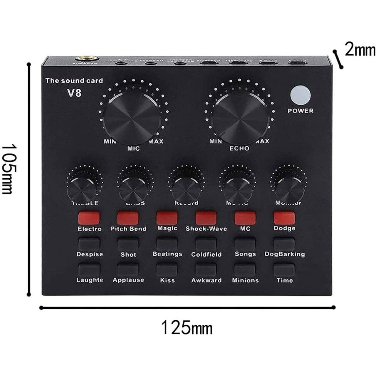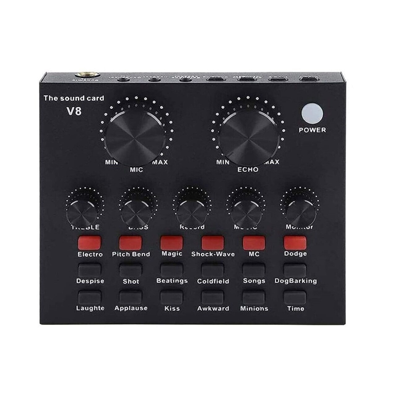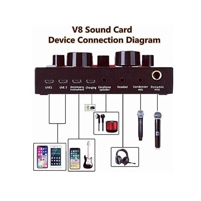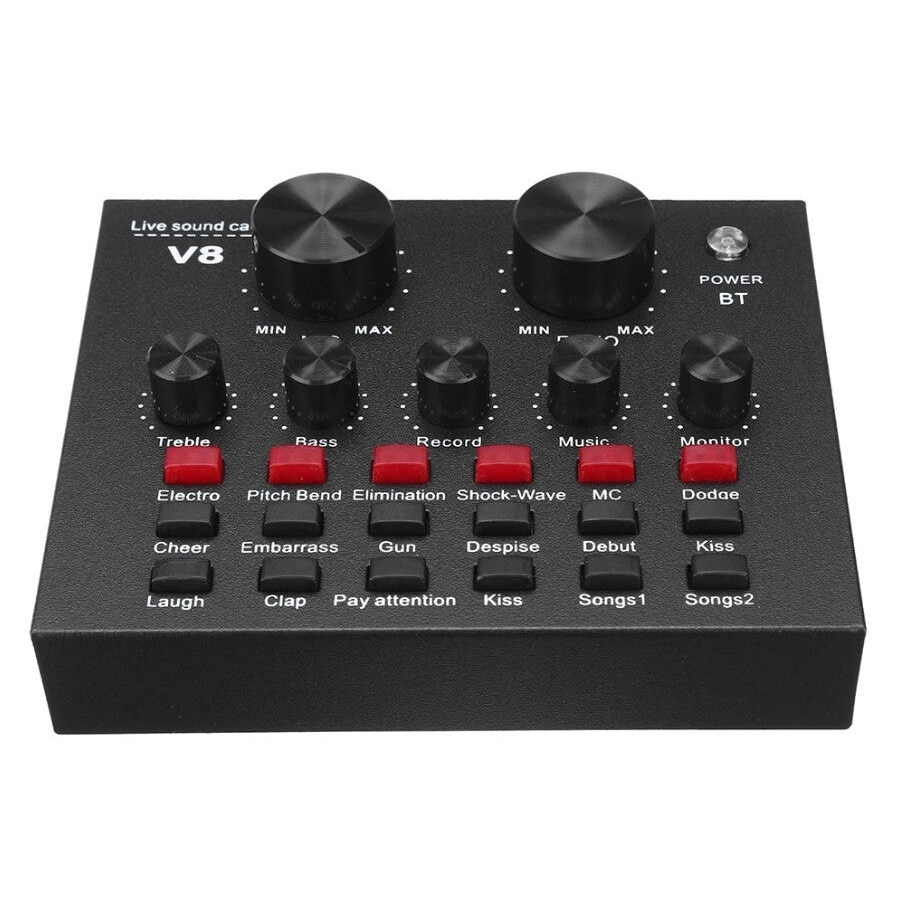Placa sunet V8 multifunctionala, cu bluetooth, 12 efecte de sunet, mufe Micro USB, 6 moduri microfon, negru