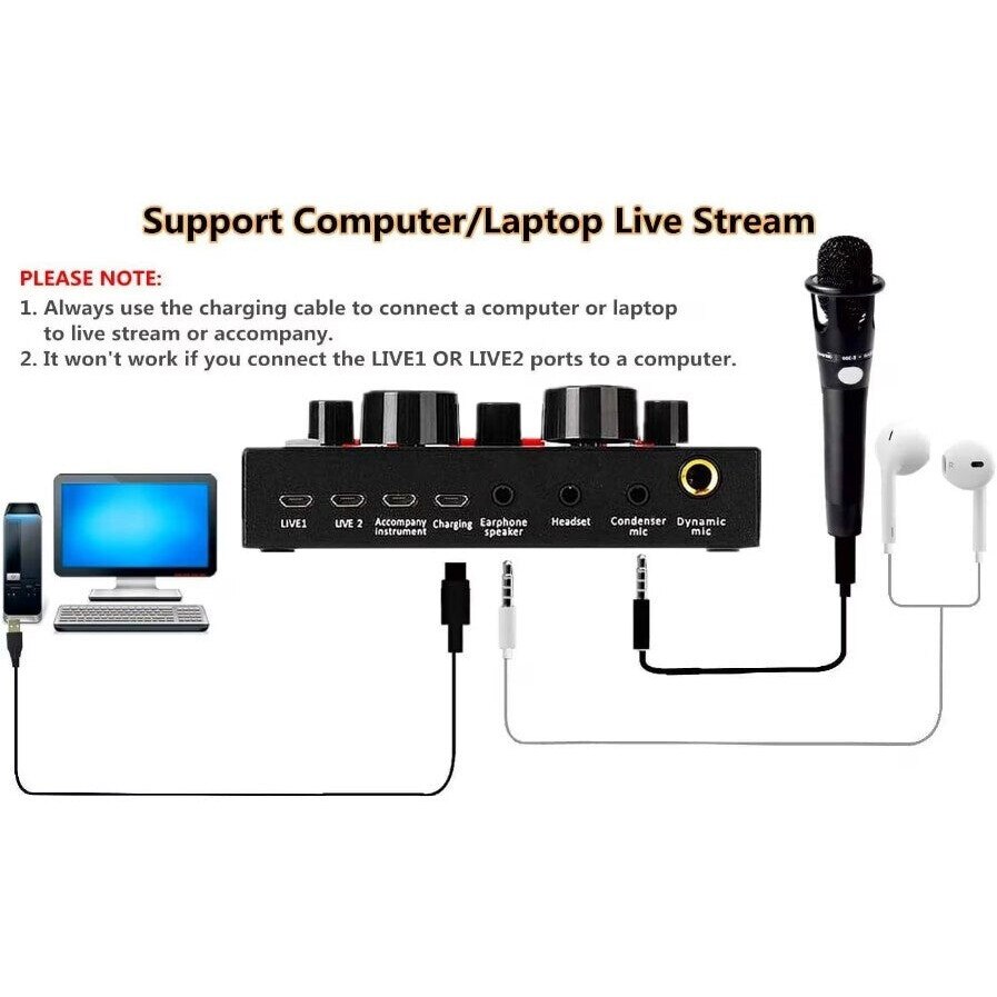 7 conexiuni: telefon mobil transmisiune live, transmisie karaoke in direct, transmisie in direct PC, transmisie in direct a computerului