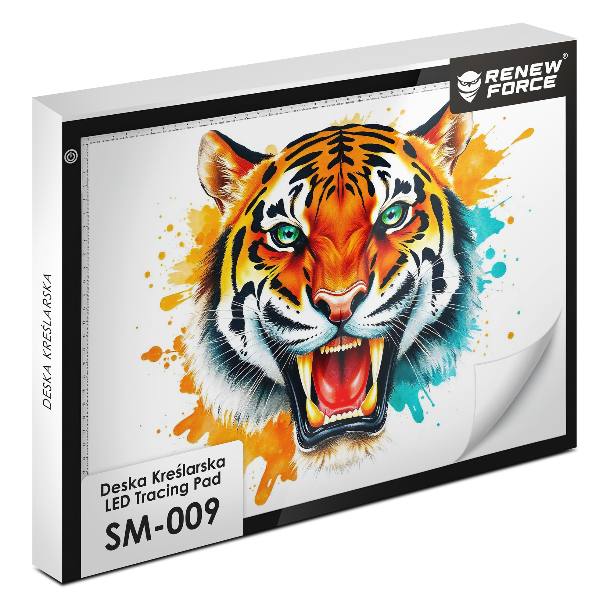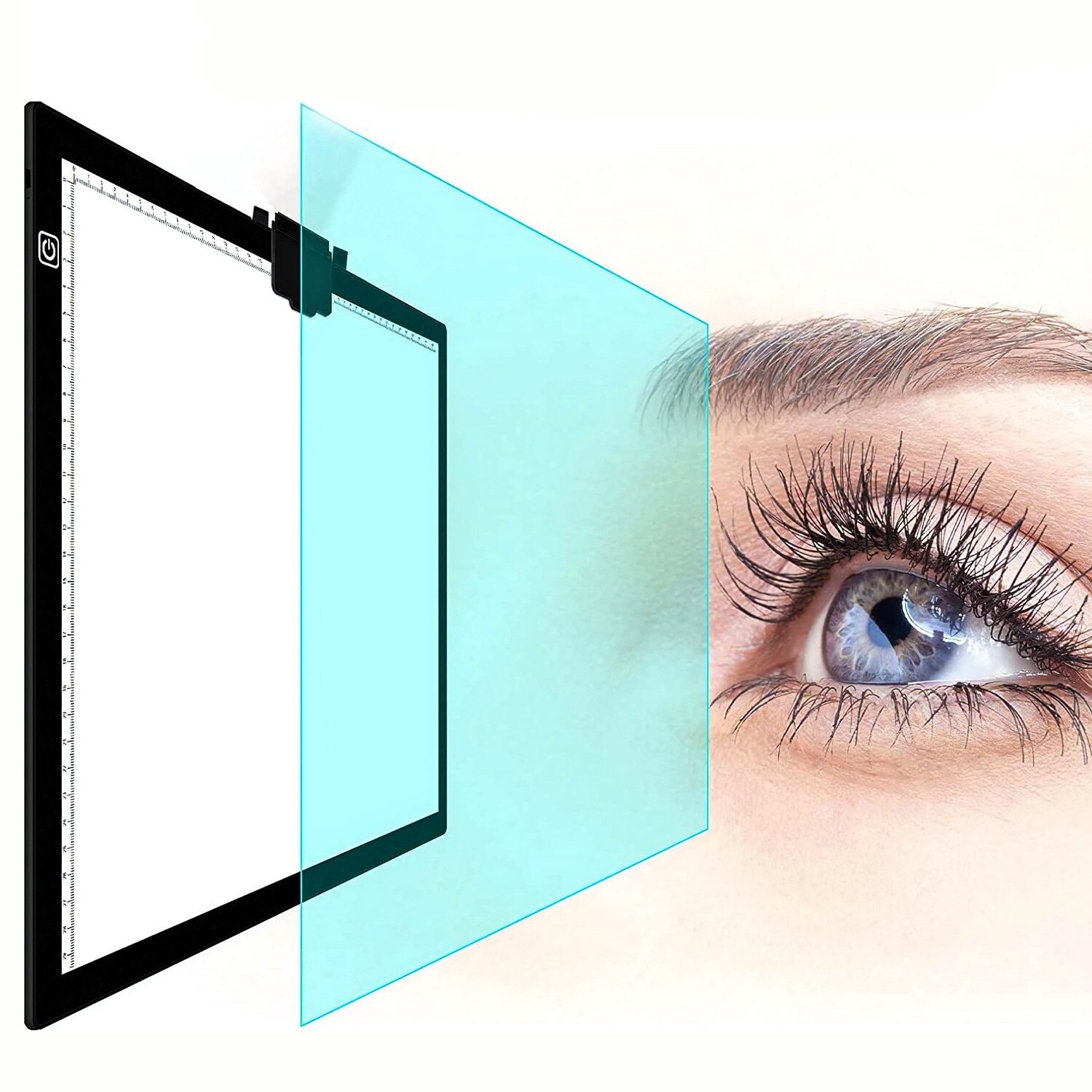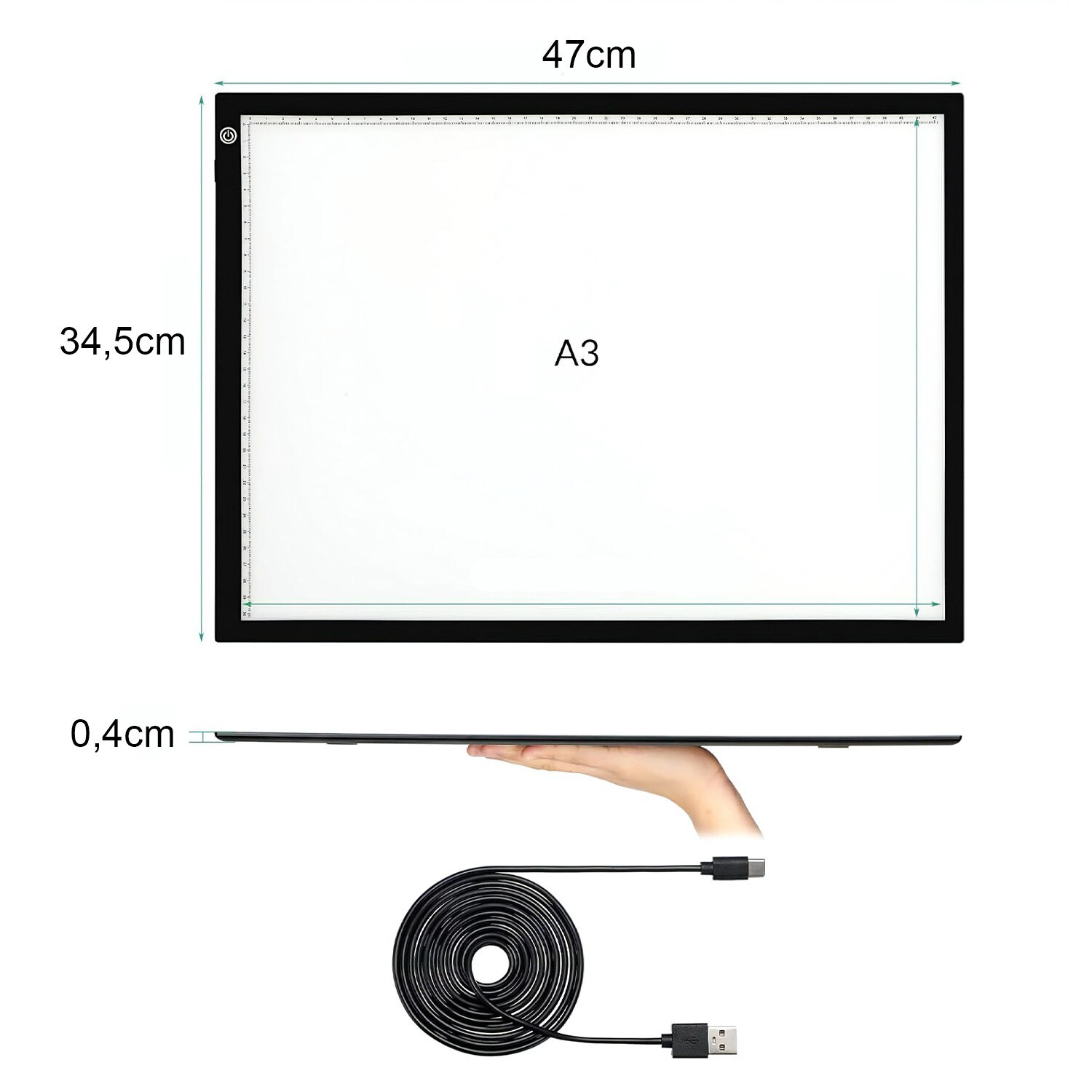 Plansa de desen A3, cu iluminare de fundal LED, Platforma Iluminata pentru desen, light pad, 3 niveluri de iluminare, USB, 47cm x 34, 5cm x 0, 4cm, pentru Transcriere Desene, Schite, Proiecte, Tatuaje si Radiografii, 3 Moduri de Iluminare negru SM-009