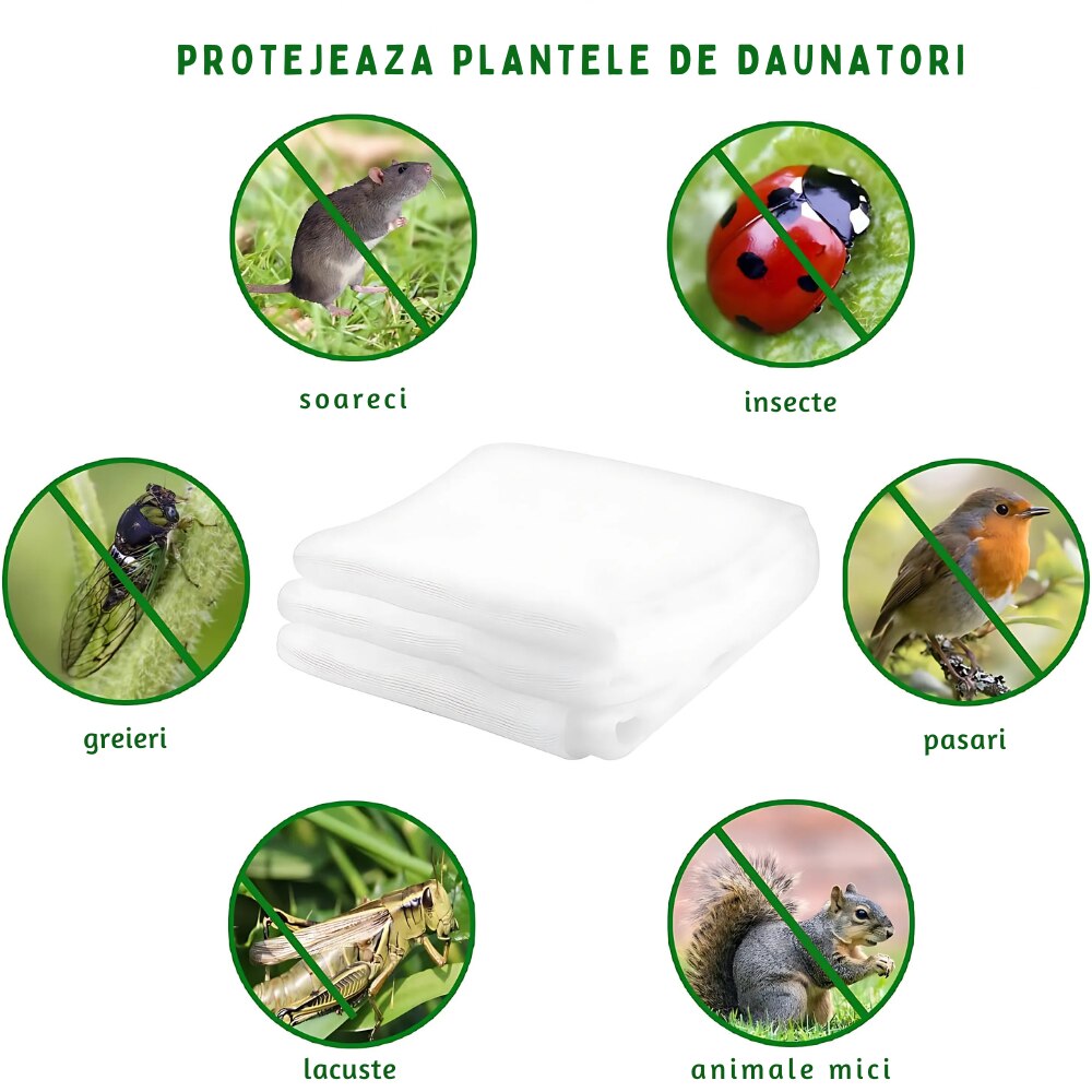 Plasa protectie plante Promerco®, design functional, protejeaza /umbreste plantele, protectie UV, anti tantari, utilizare versatila, 8 x 7m, alb