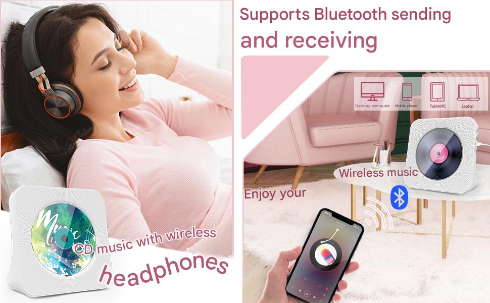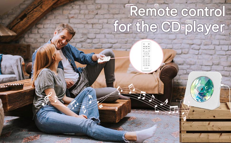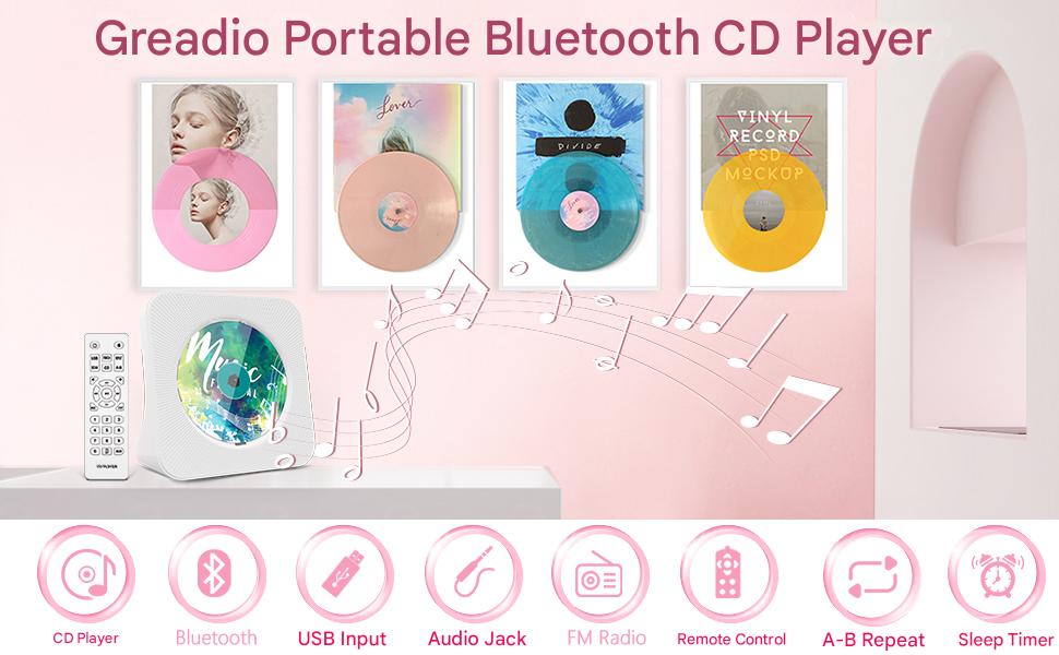 Player CD portabil Greadio, Bluetooth 5.0, HiFi stereo, alb, cu telecomandă