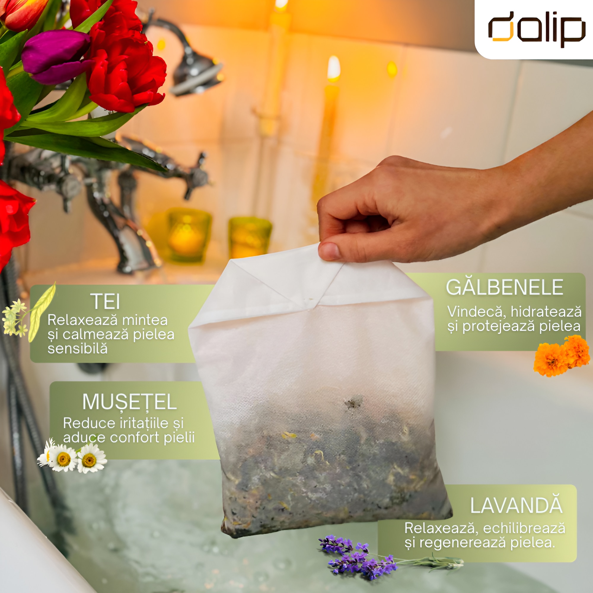 Plic Ceai pentru Baie, 80g, Tei, Musetel, Lavanda, Galbenele, Relaxare, Aromaterapie