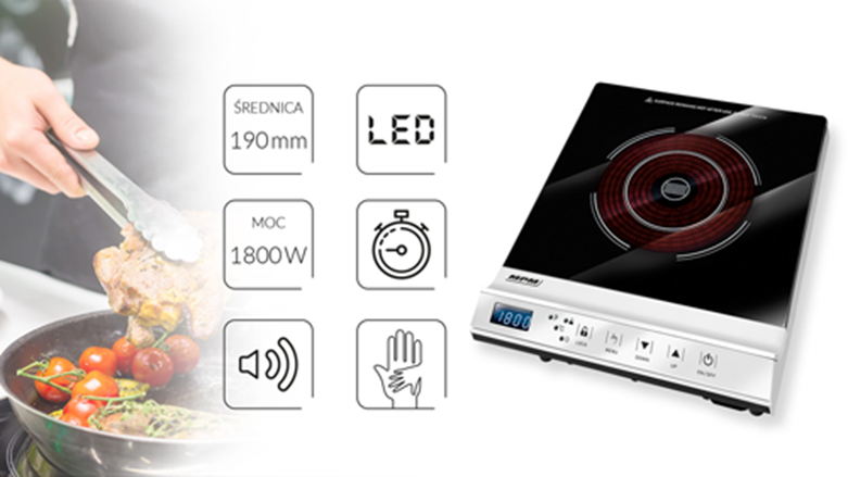 Plita cu inductie, MPM, 1800 W, Negru/Argintiu