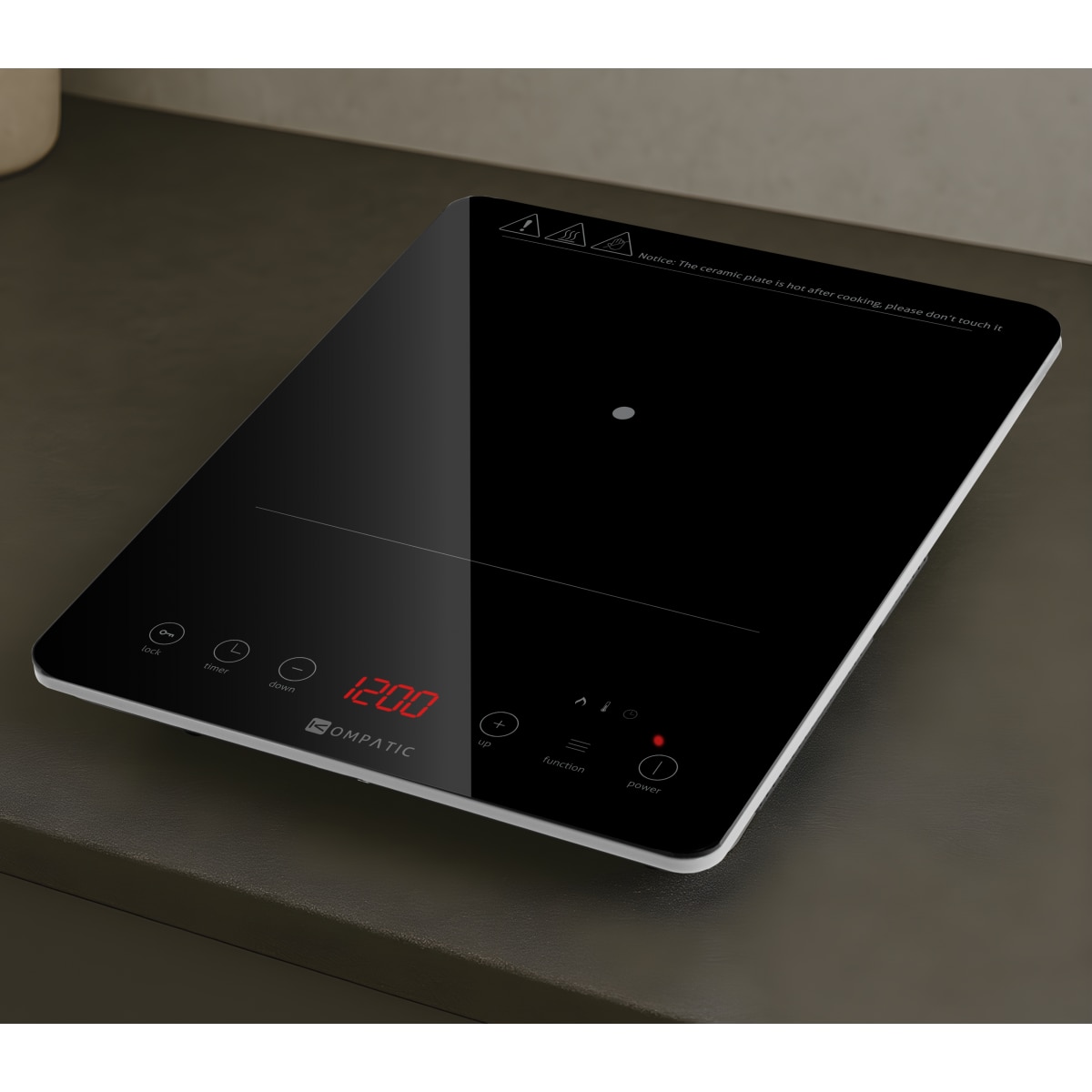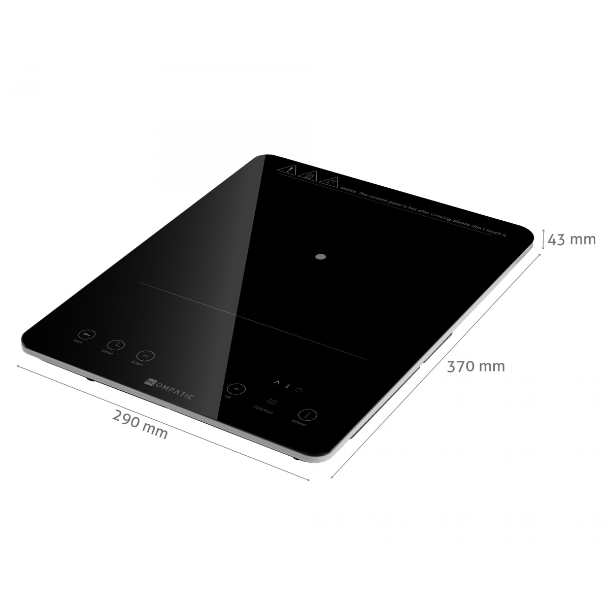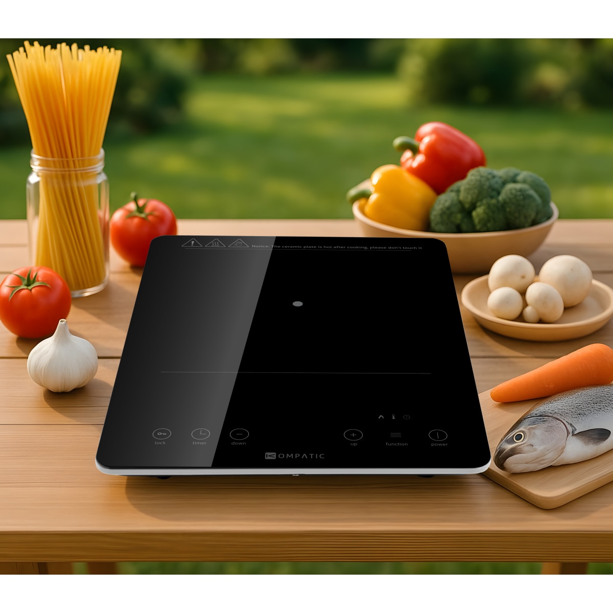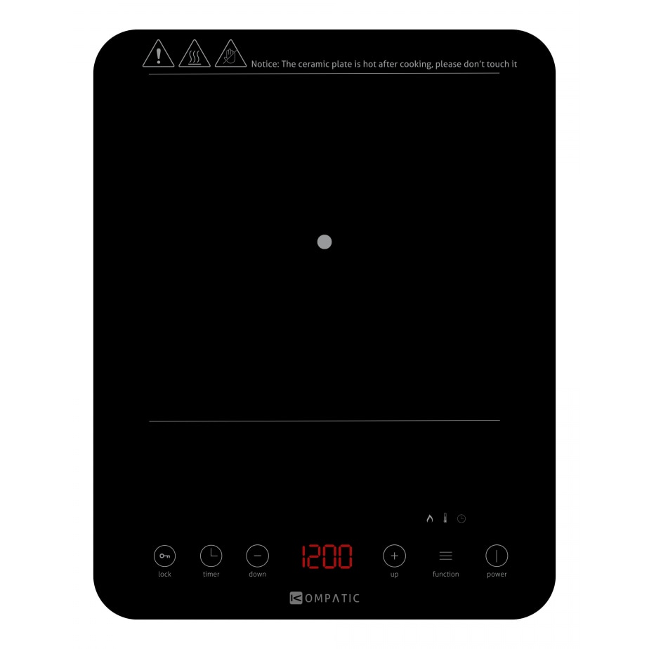 Plita electrica Kompatic by Turbionaire, KFE20SBT1, 2000W, 10 trepte de temperatura, 8 trepte de putere, Inductie, Timer, Touch Control, Blocare pentru copii, Sticla ceramica neagra, Display LED