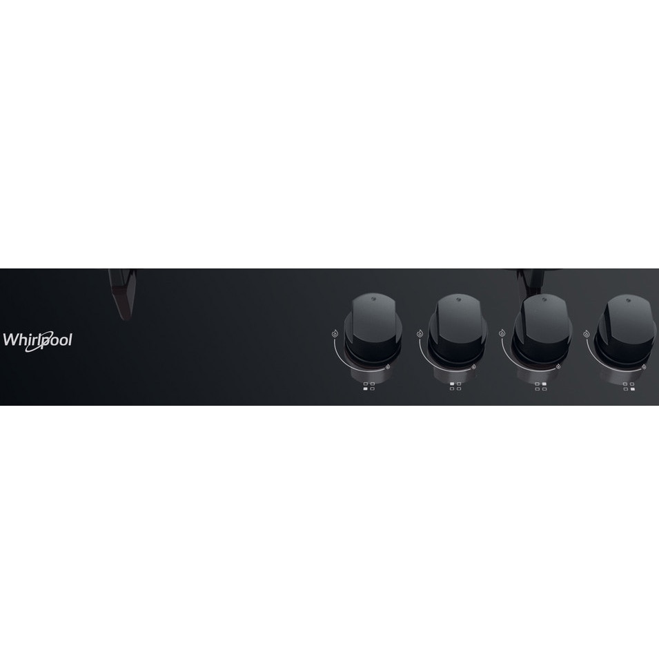 Plita incorporabila Whirlpool GOB616NB, Gaz, 4 arzatoare, Gratare fonta, MultiStep, 60 cm, Negru