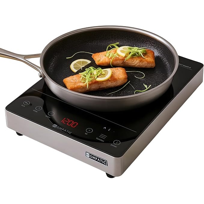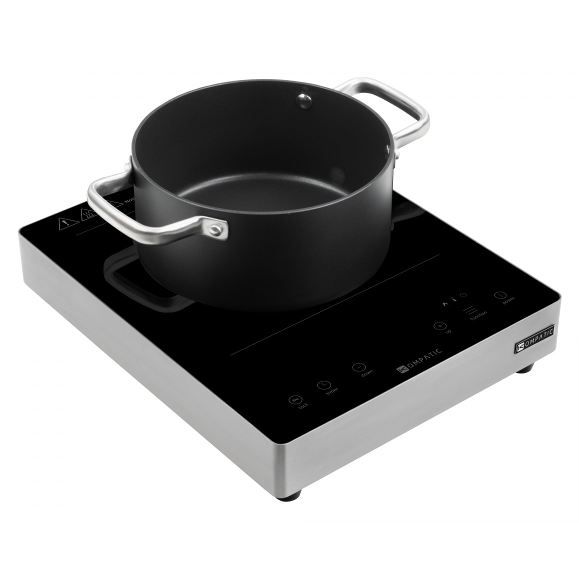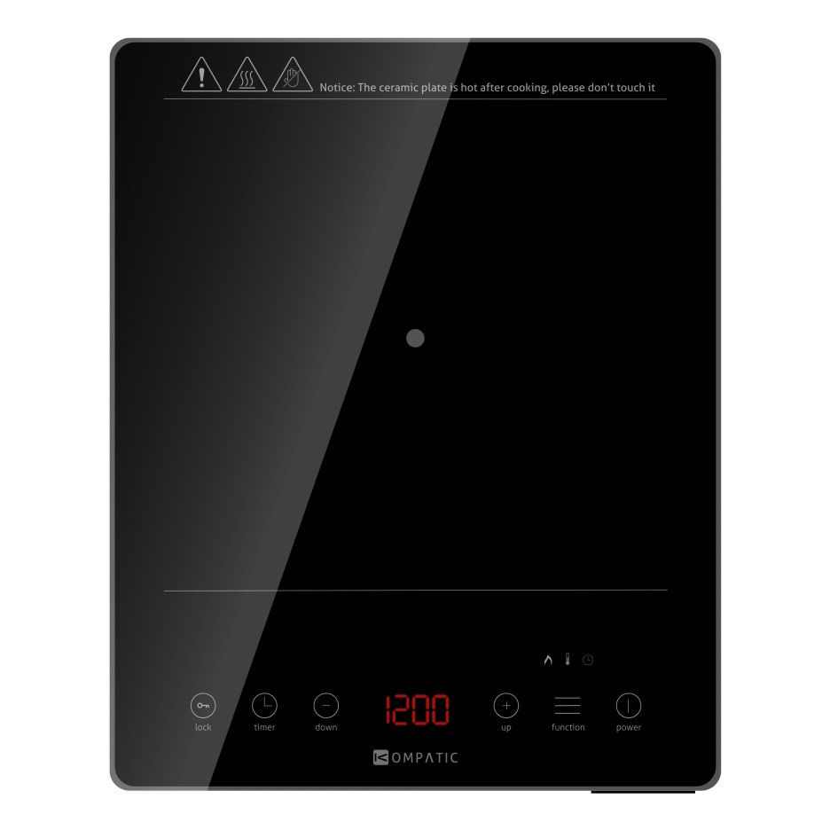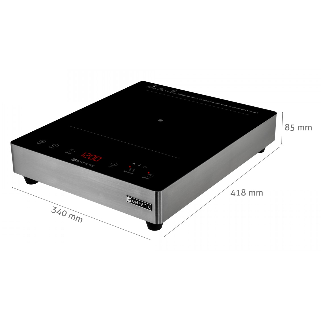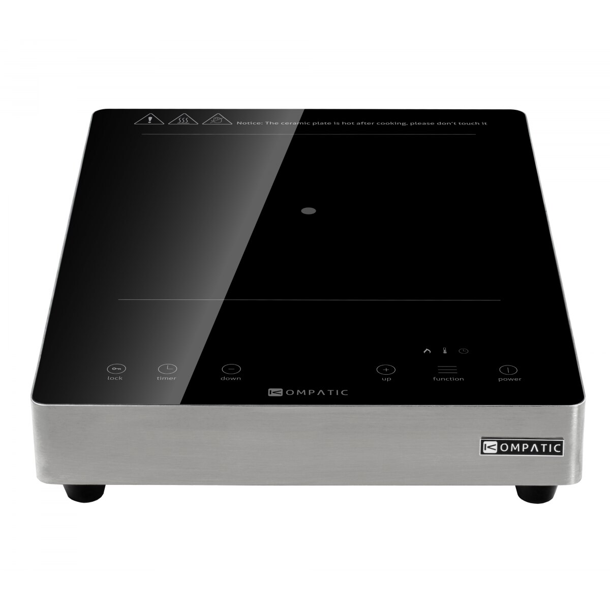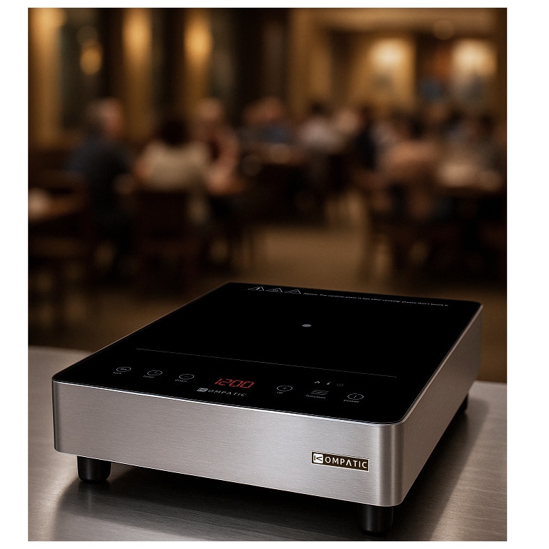 Plita Profesionala Kompatic by Turbionaire KFE35TPBT1, 3500W, Inductie, 10 trepte temperatura, Timer, Control Touch, Sticla ceramica neagra, Finisaj Inox, Display LED