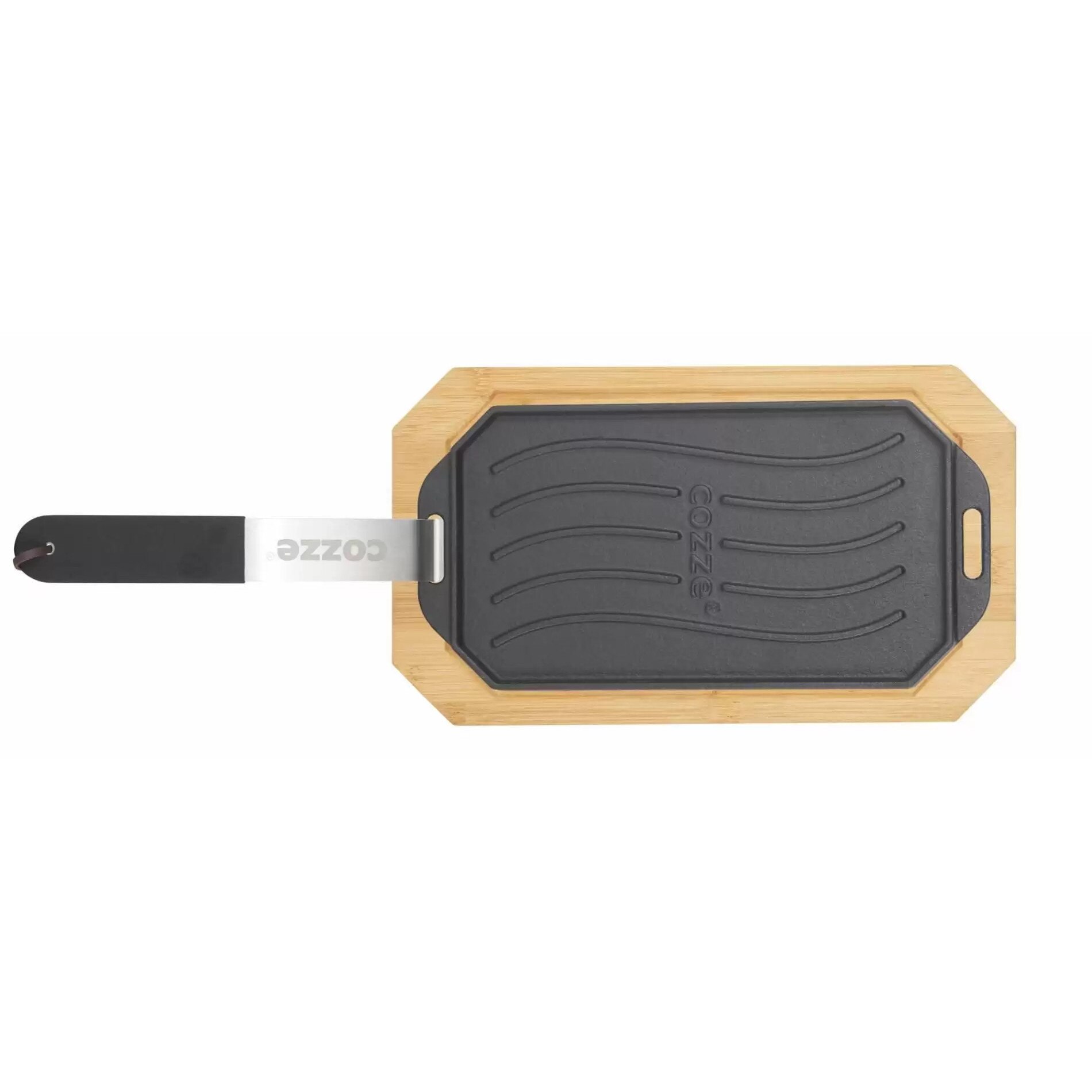Plita reversibila din fonta cu doua fete grill sau neteda cu suport din lemn pentru servire Cozze 16,5 x 33 cm 90326