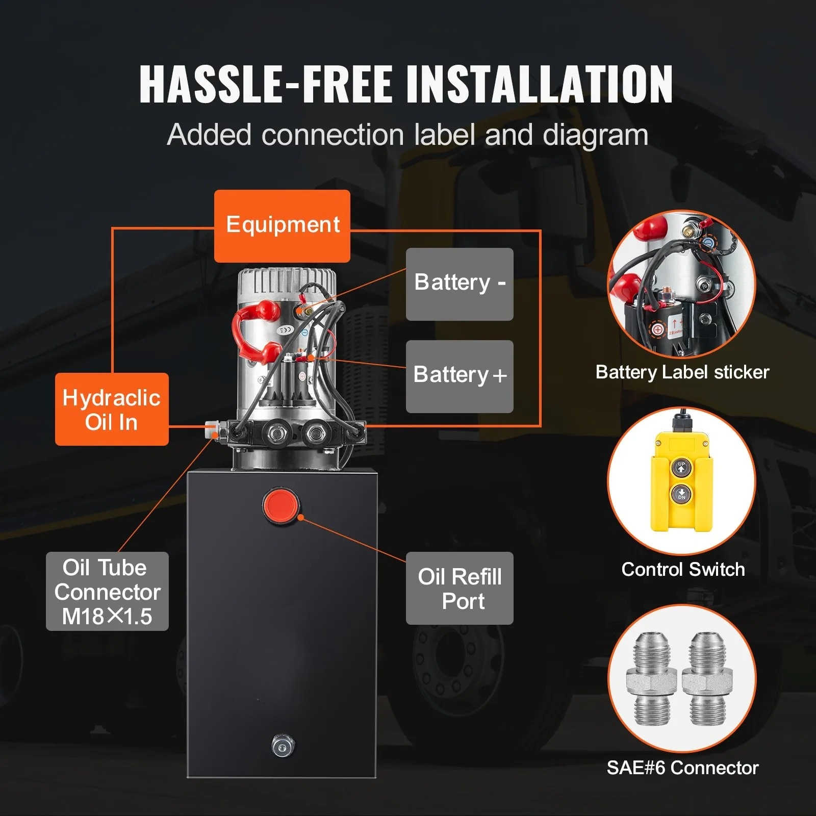 Pompa hidraulică VEVOR 12V, 15 litri, 220 bar, pentru basculante și ridicare auto, dimensiuni 595x212x243mm