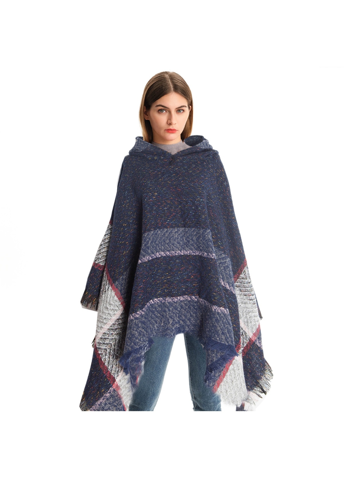 Poncho dama, retro cu franjuri, multifunctional, poliester, 135x135cm