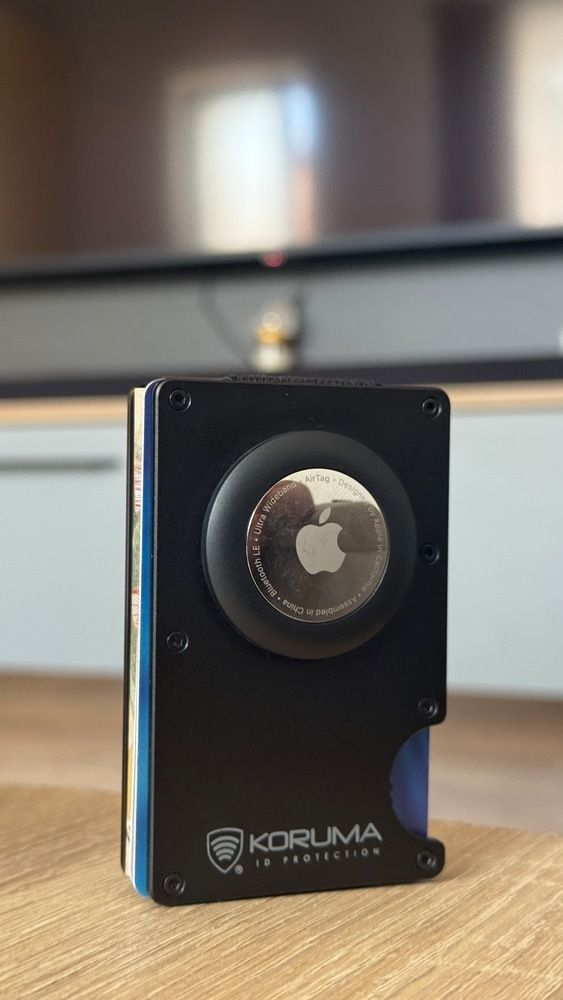 Koruma® - Portofel barbati Slim din Aluminiu pentru Carduri si AirTag, Protectie RFID, Koruma, KUK-68TAGCBL, Negru Carbon