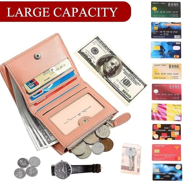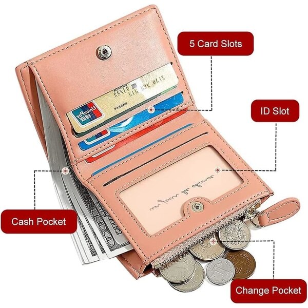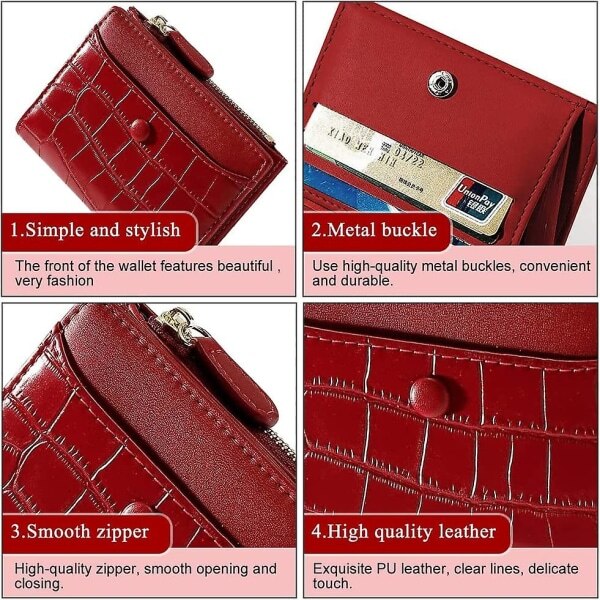 Portofel mic dama, piele PU, 1 compartiment pentru bancnote, 1 buzunar cu fermoar, 6 sloturi pentru carduri, 11.5x9x2.8cm