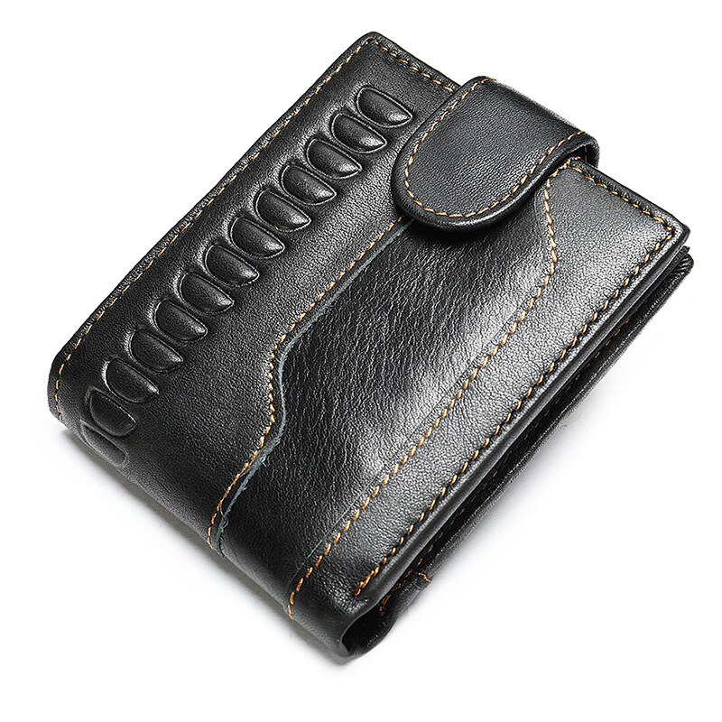 Portofel pentru barbati, Lucmark, Piele naturala, Dimensiuni 11, 2 x 1, 6 x 9, 2 cm, Inchidere cu capsa, Protectie RFID, Negru