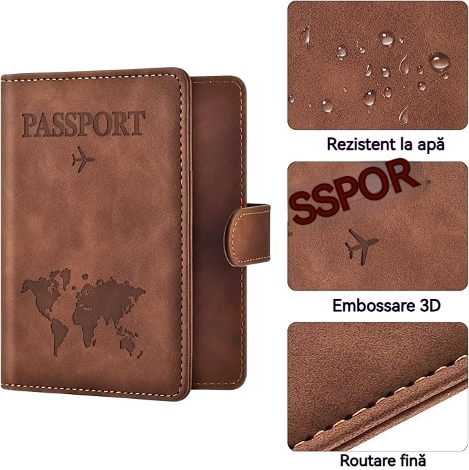 Portofel pentru pasaport Kengege, design unisex, tehnologie RFID, maro