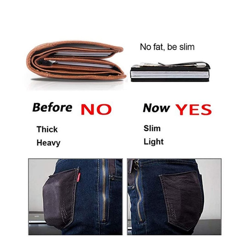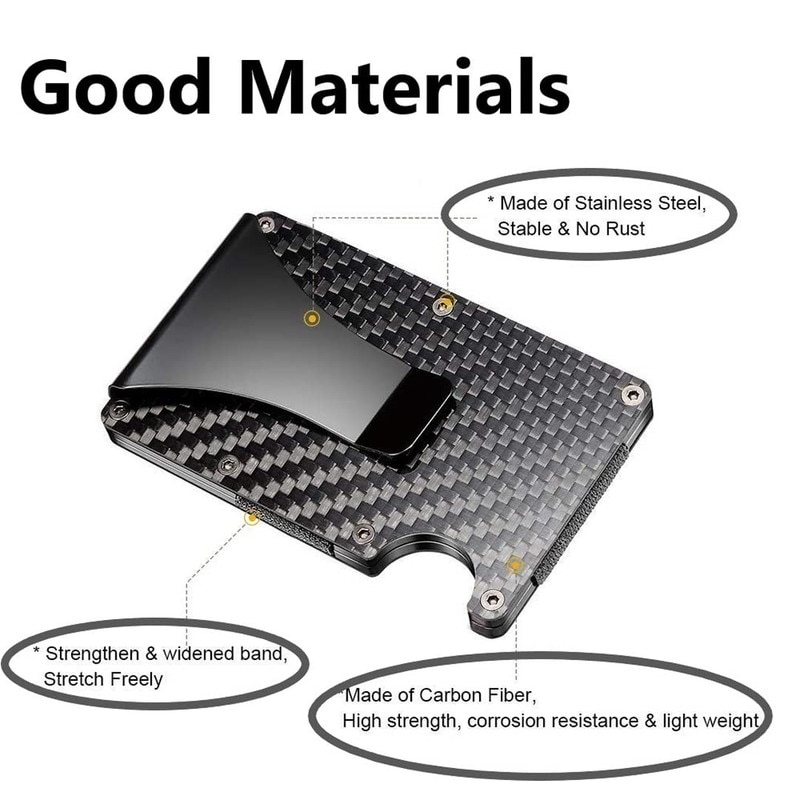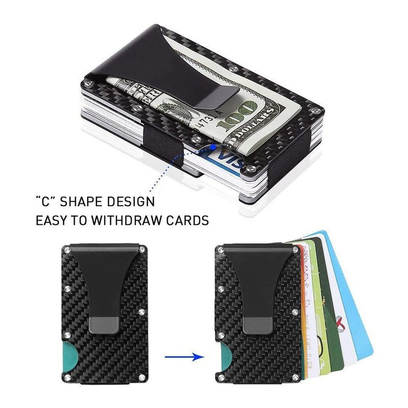 Portofel slim pentru barbati, Cafuneplus®, protectie RFID carduri, Fibra de carbon, Negru