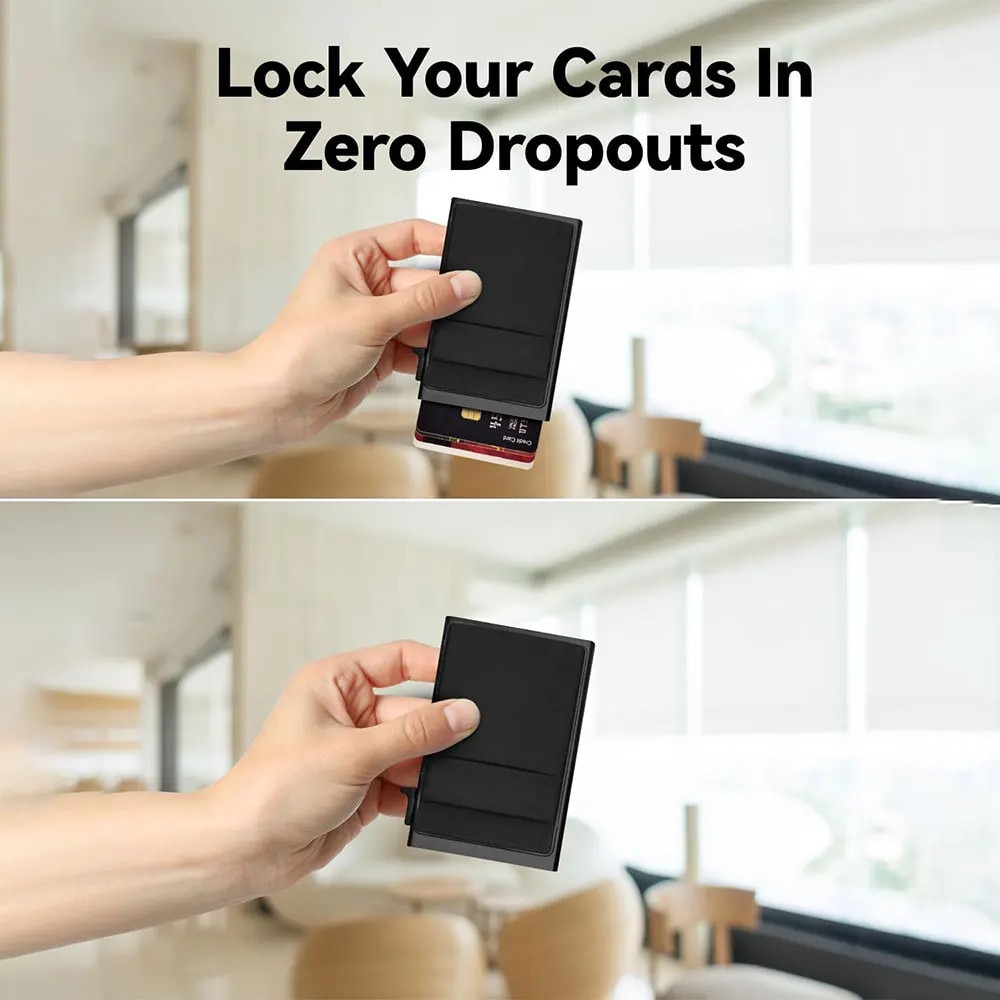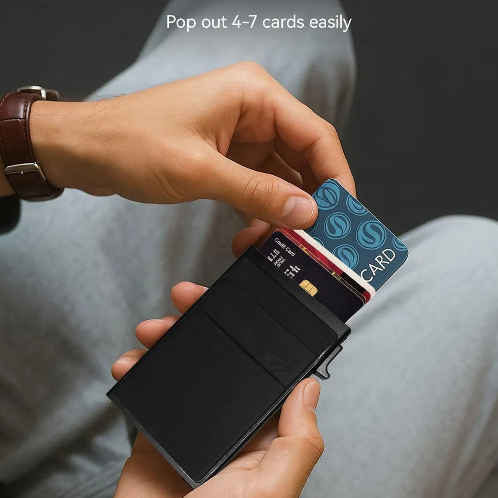 Portofel subtire din aluminiu pentru carduri, JESWO®, RFID/NFC, Suport de card pop-up, Negru