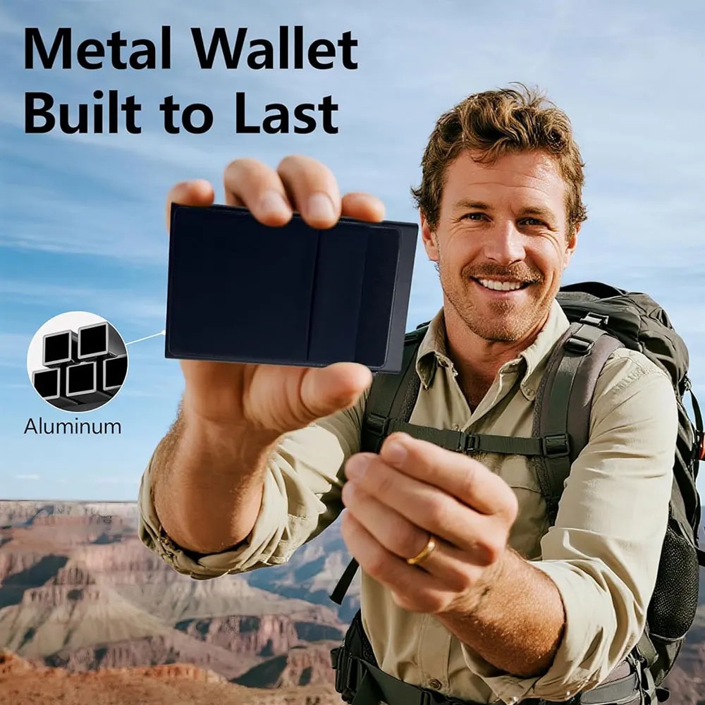 JESWO - Portofel subtire din aluminiu pentru carduri, ®, RFID/NFC, Suport de card pop-up, Negru