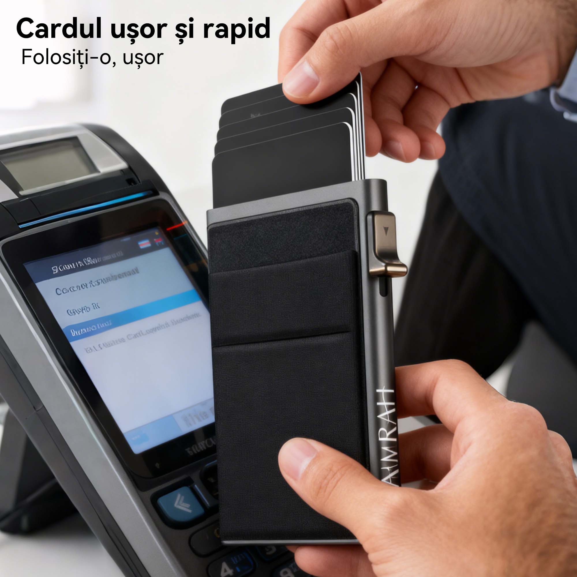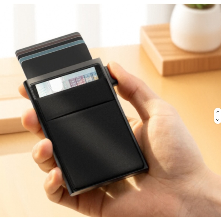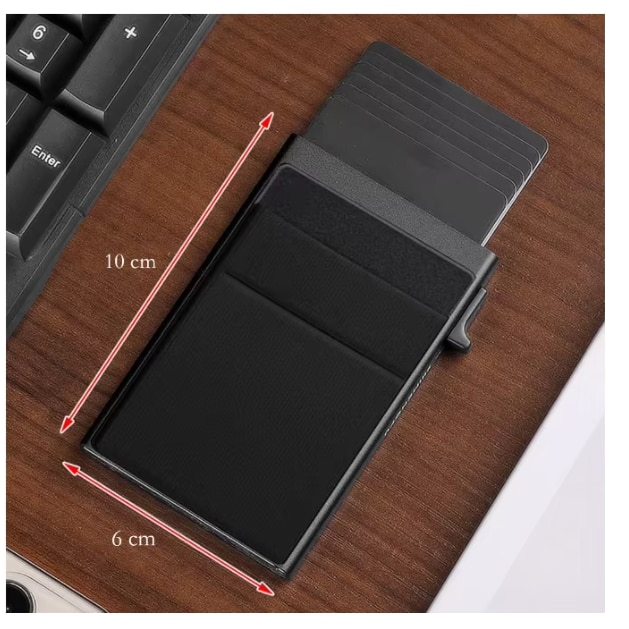 Portofel subtire din aluminiu pentru carduri, Suport de card pop-up, Negru