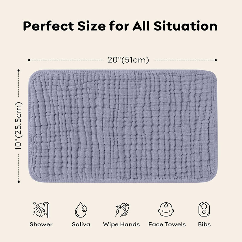 Proiectul prosopului (50x25cm) poate atinge performanta maxima de absorbtie. Tesatura de bumbac pur poate captura imediat umiditatea si ofera protectie completa impotriva scurgerilor in timpul proceselor de hranire, burping sau spalare. Dimensiunea spatioasa asigura o acoperire optima, iar structura gonflabila permite uscarea rapida. Acest lucru le face foarte potrivite pentru utilizarea acasa si in deplasare.