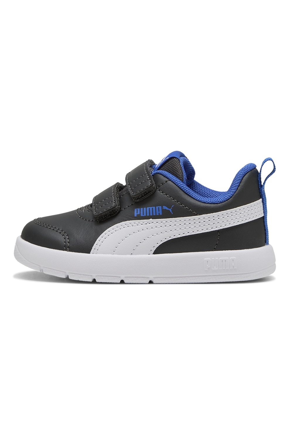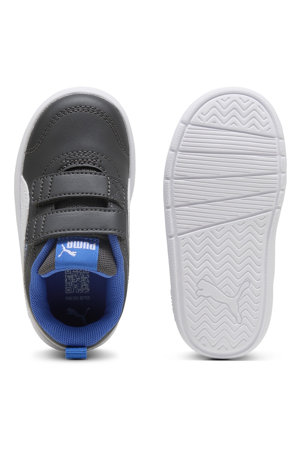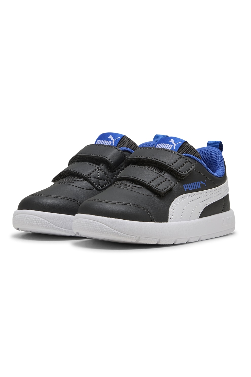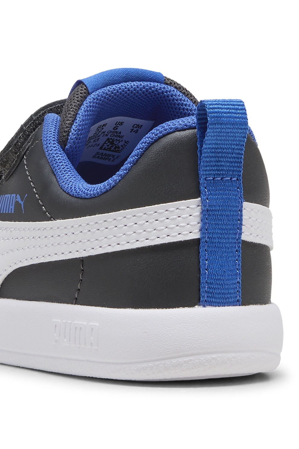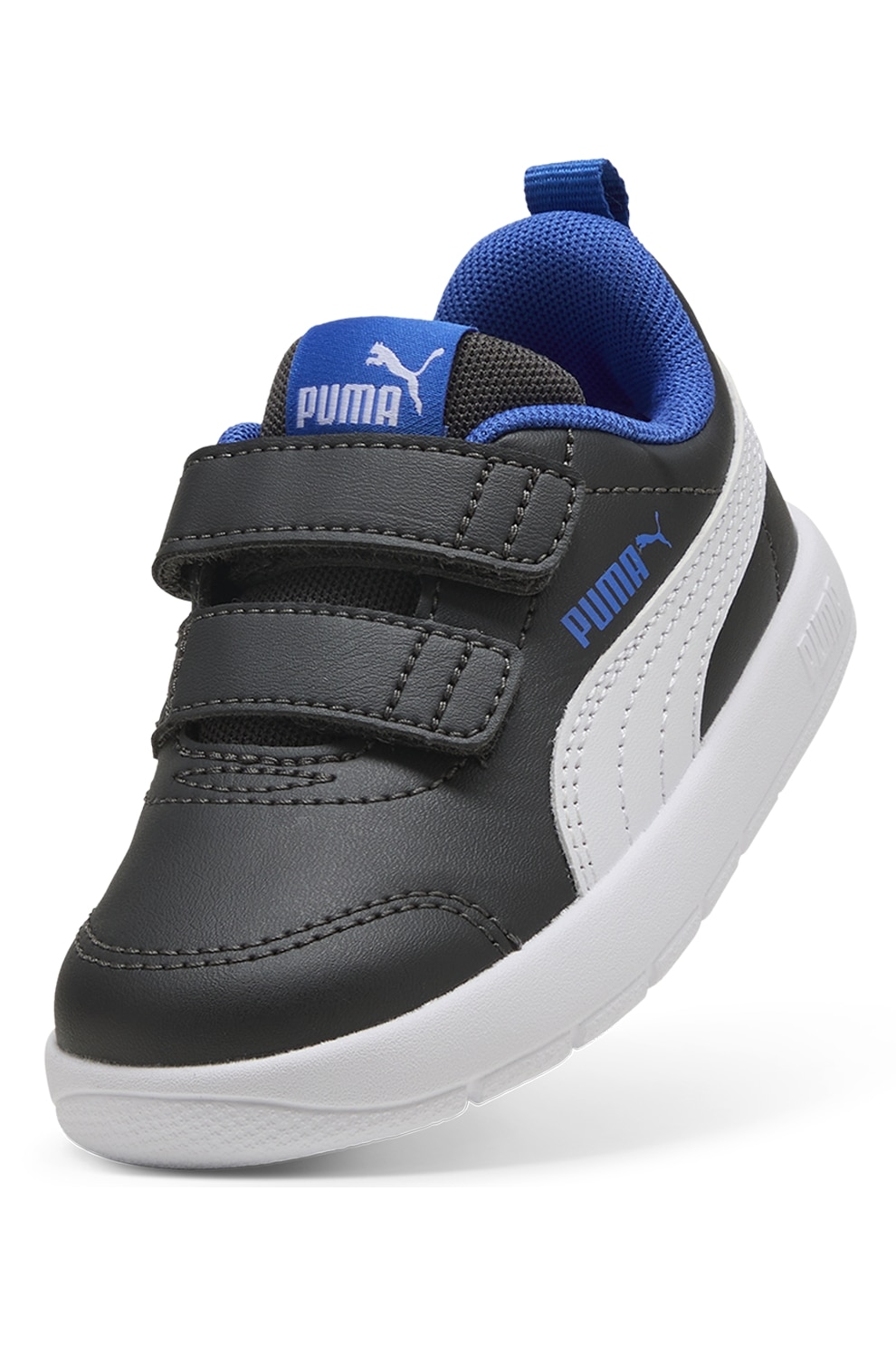 Puma - Pantofi sport Courtflex din piele ecologica cu velcro, Alb, Negru, Albastru royal, 25 EU