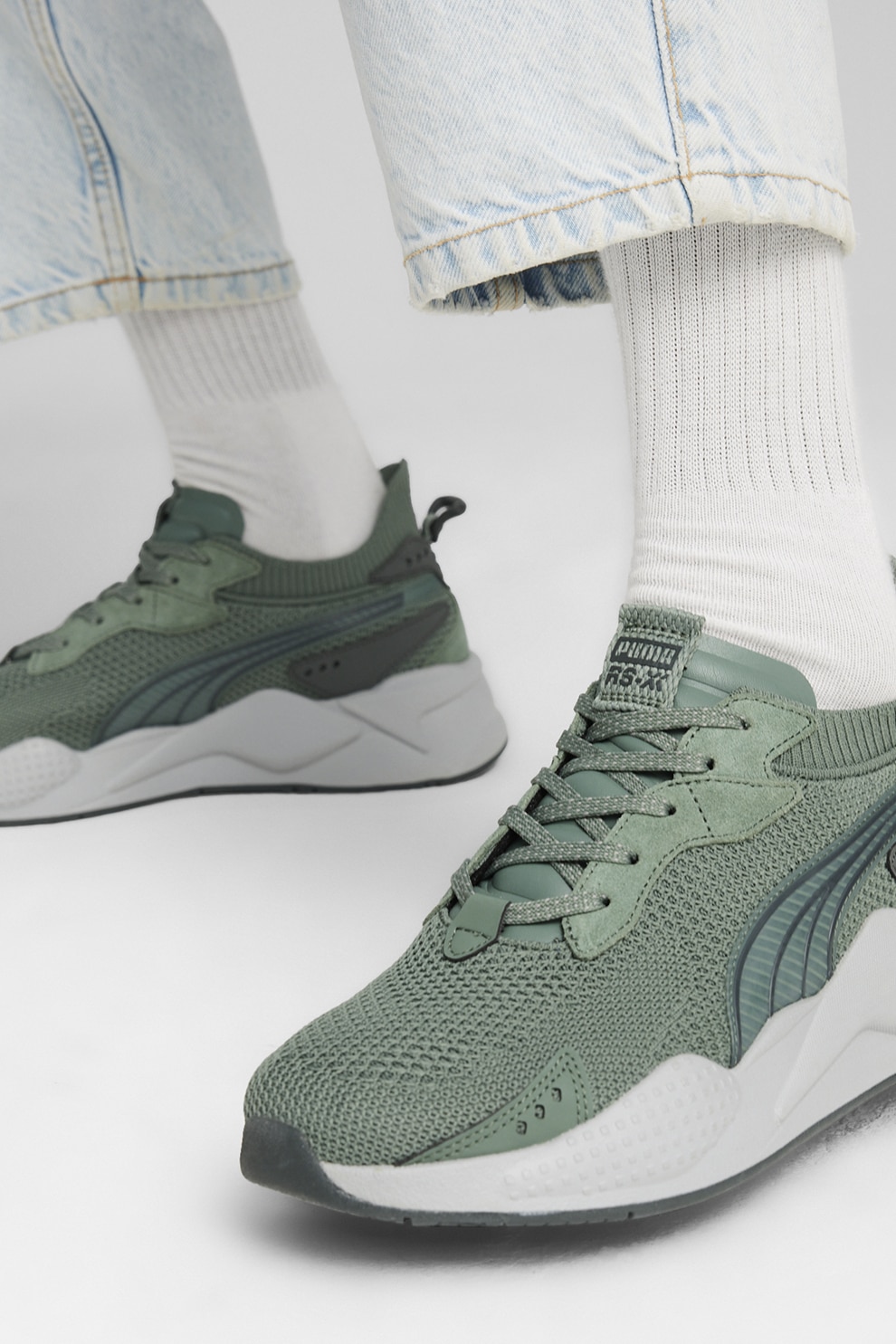 Puma, Pantofi sport cu detalii de piele intoarsa RS-XK, Verde sparanghel