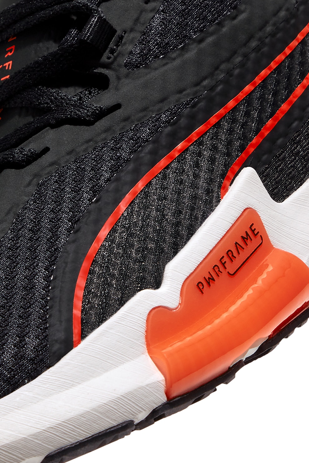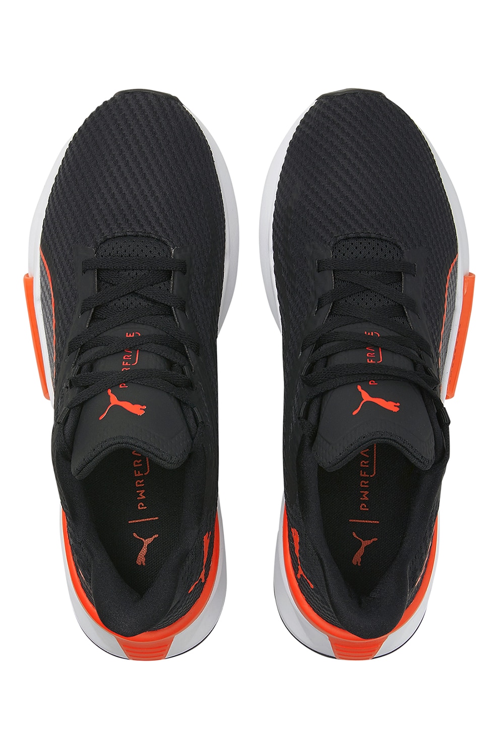 Puma - Pantofi sport de plasa tricotata, pentru antrenament PWRFrame, Negru, Portocaliu mandarina, 6.5