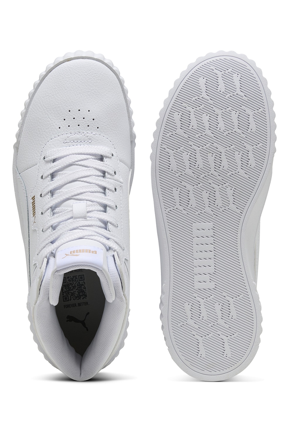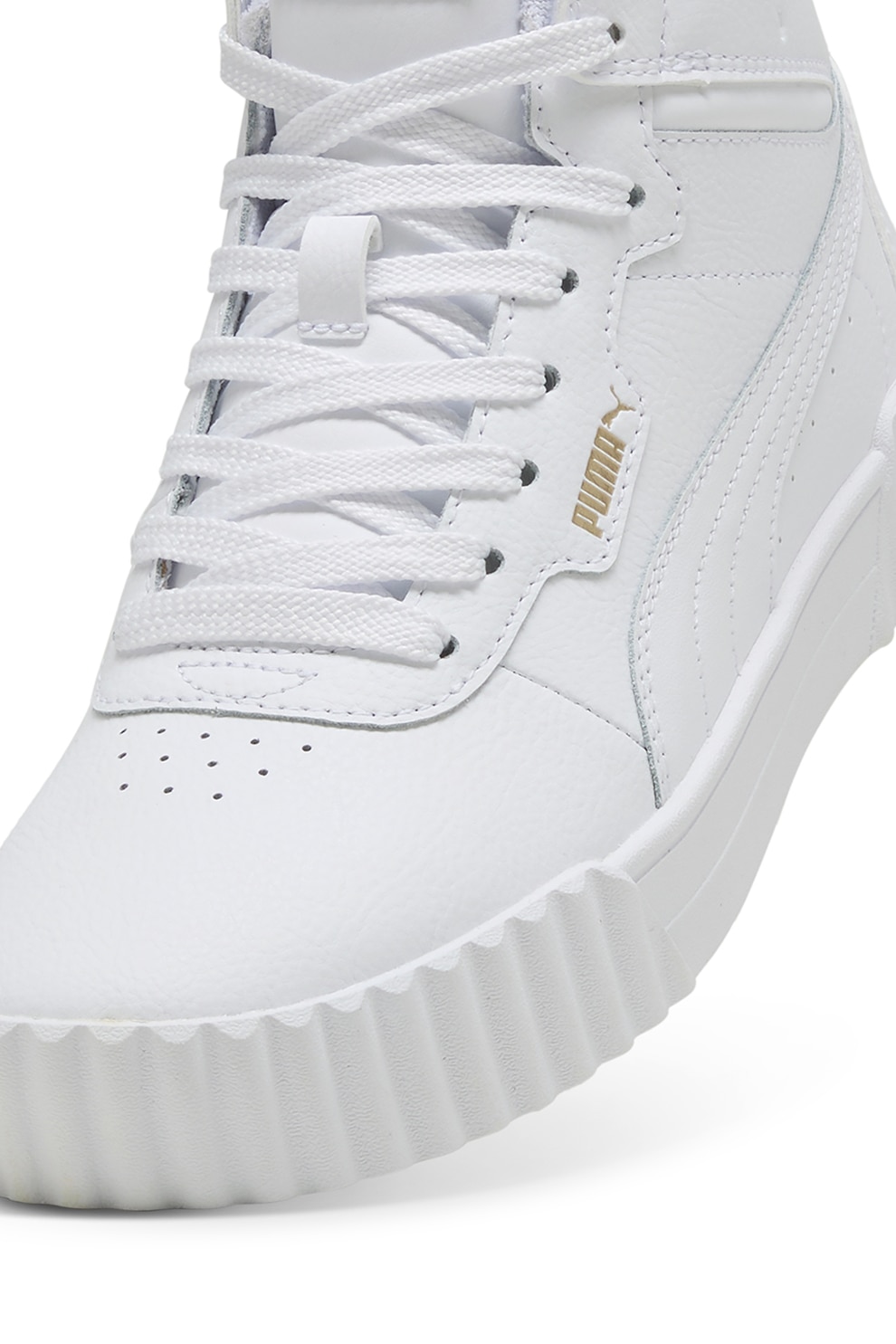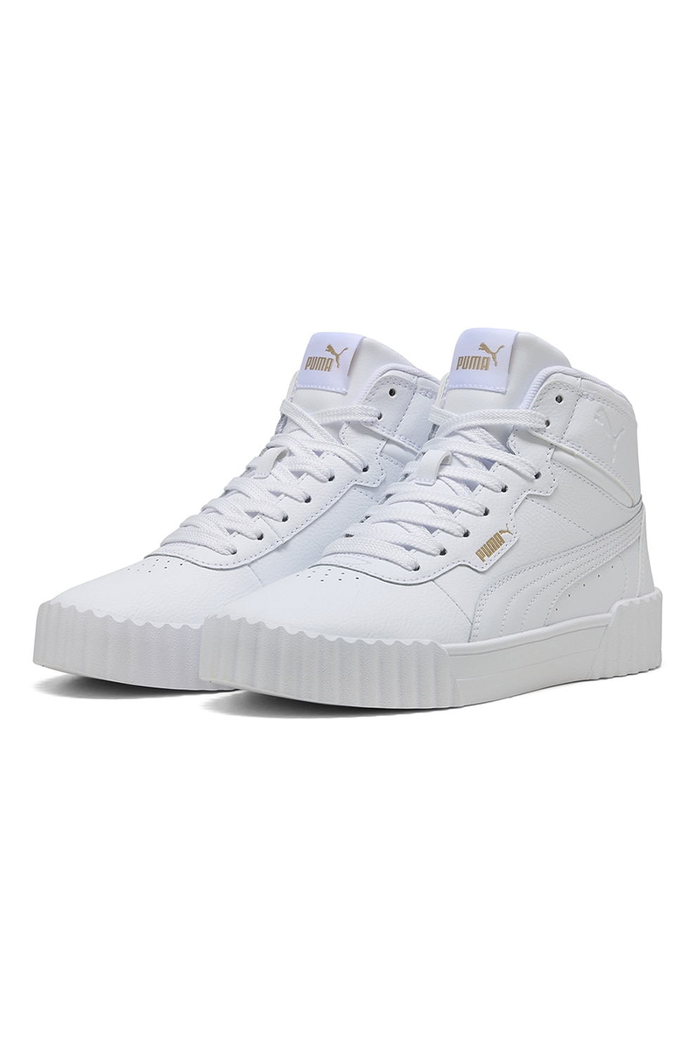 Puma - Pantofi sport mid-high din piele Carinna 3.0, Auriu/Alb optic