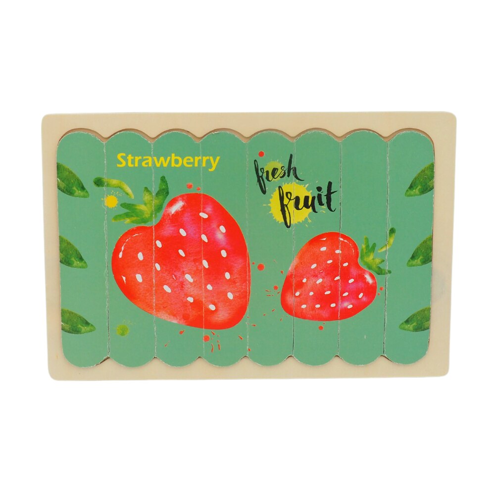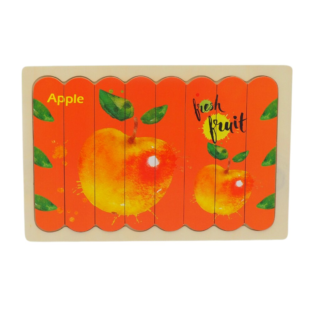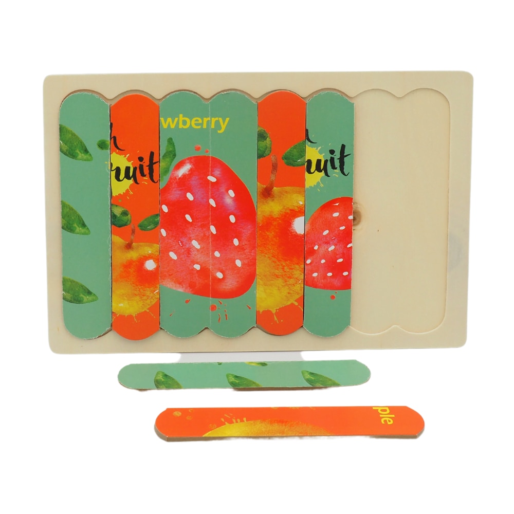 Puzzle educativ incastru Montessori cu 2 fete, mar si capsuna, Onore, multicolor, lemn, 22 x 14 cm, 8 piese, denumire lb. engleza