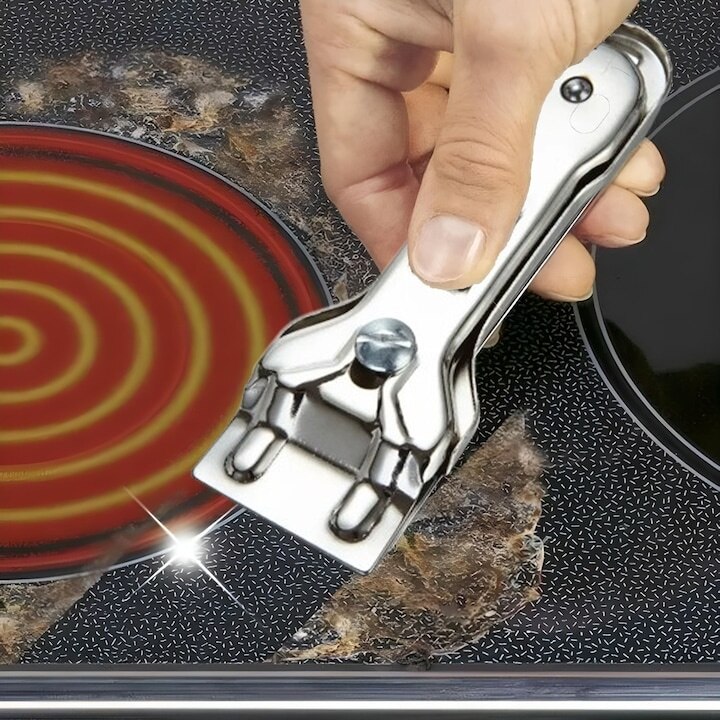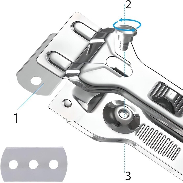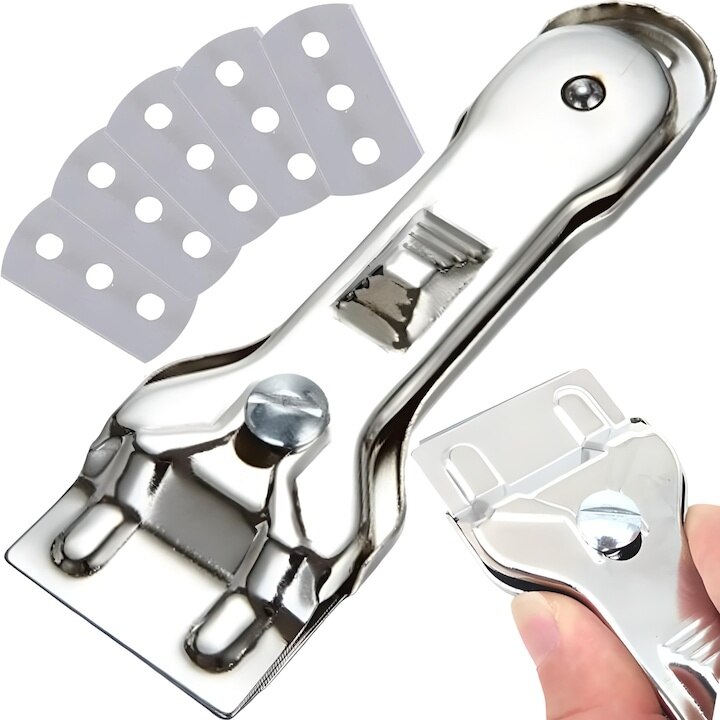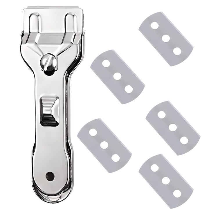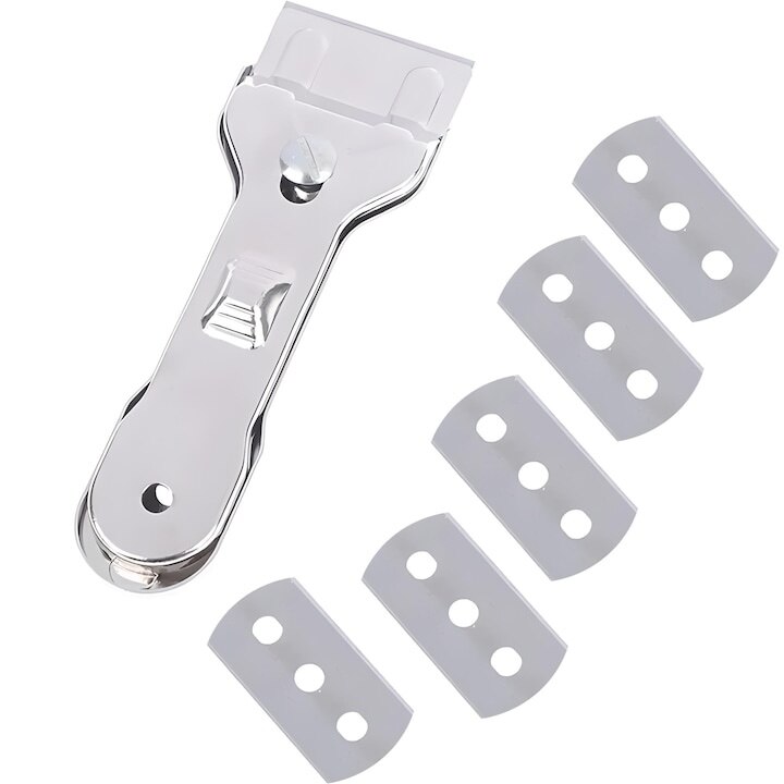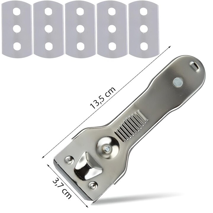 Racleta metalica pentru plita cu inductie, Dodaco, set cu 5 lame, argintie, 13, 5x3, 9x1, 5cm