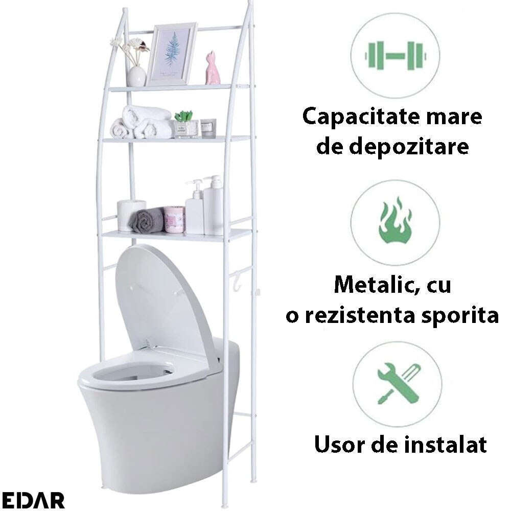 Raft Baie EDAR Cu 3 Rafturi, Montare Deasupra Toaletei, Organizare Si Depozitare, Dimensiuni 155 x 25 x 46 cm, Alb
