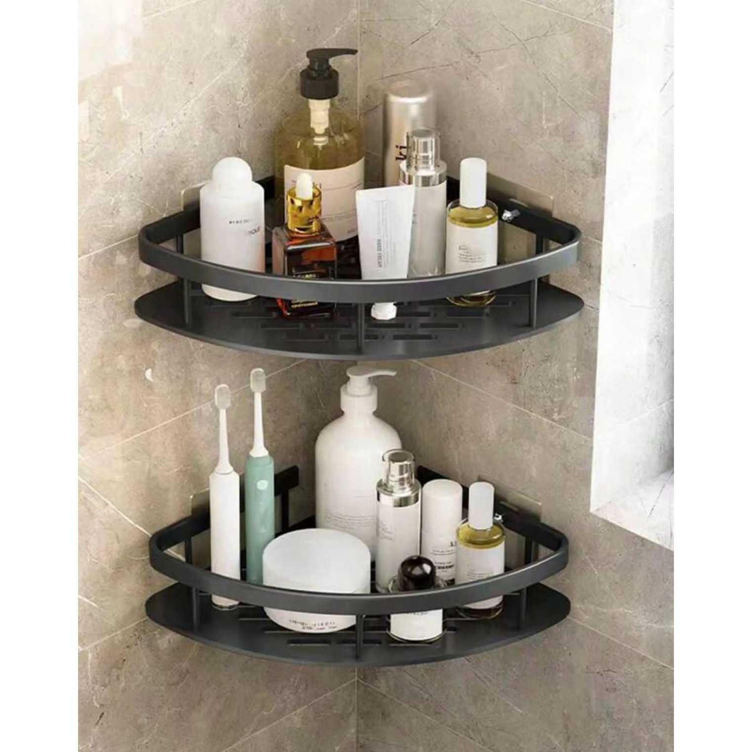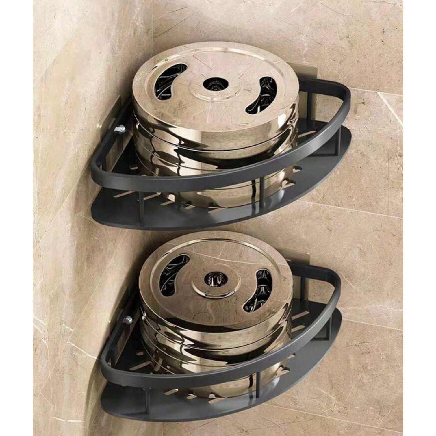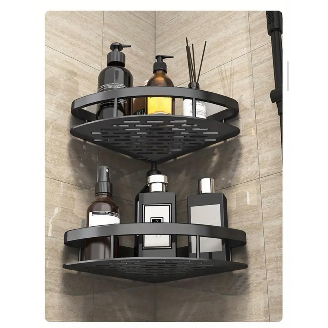 Raft de dus, etajera de colt pentru baie, din aluminiu, pentru depozitare, organizator, set 2 bucati, Negru