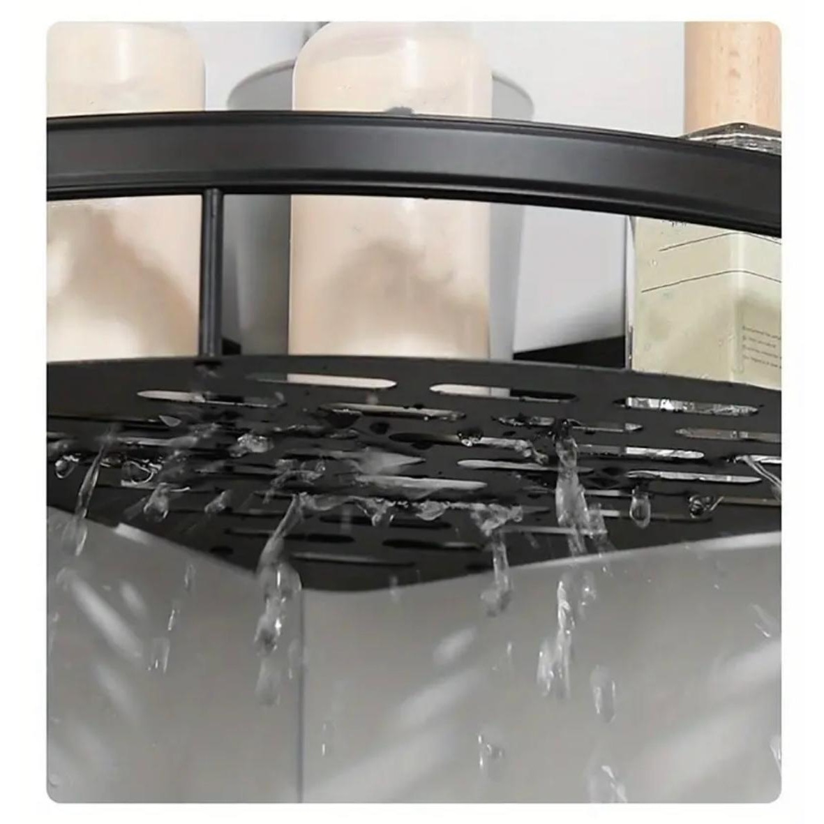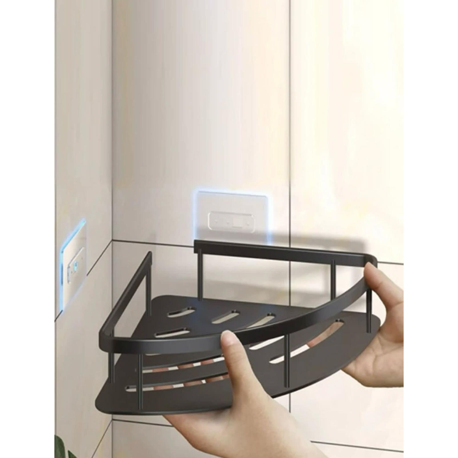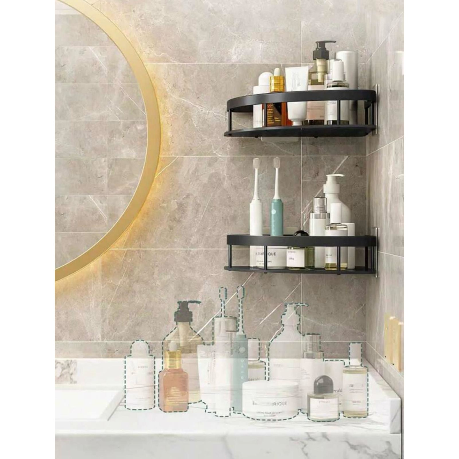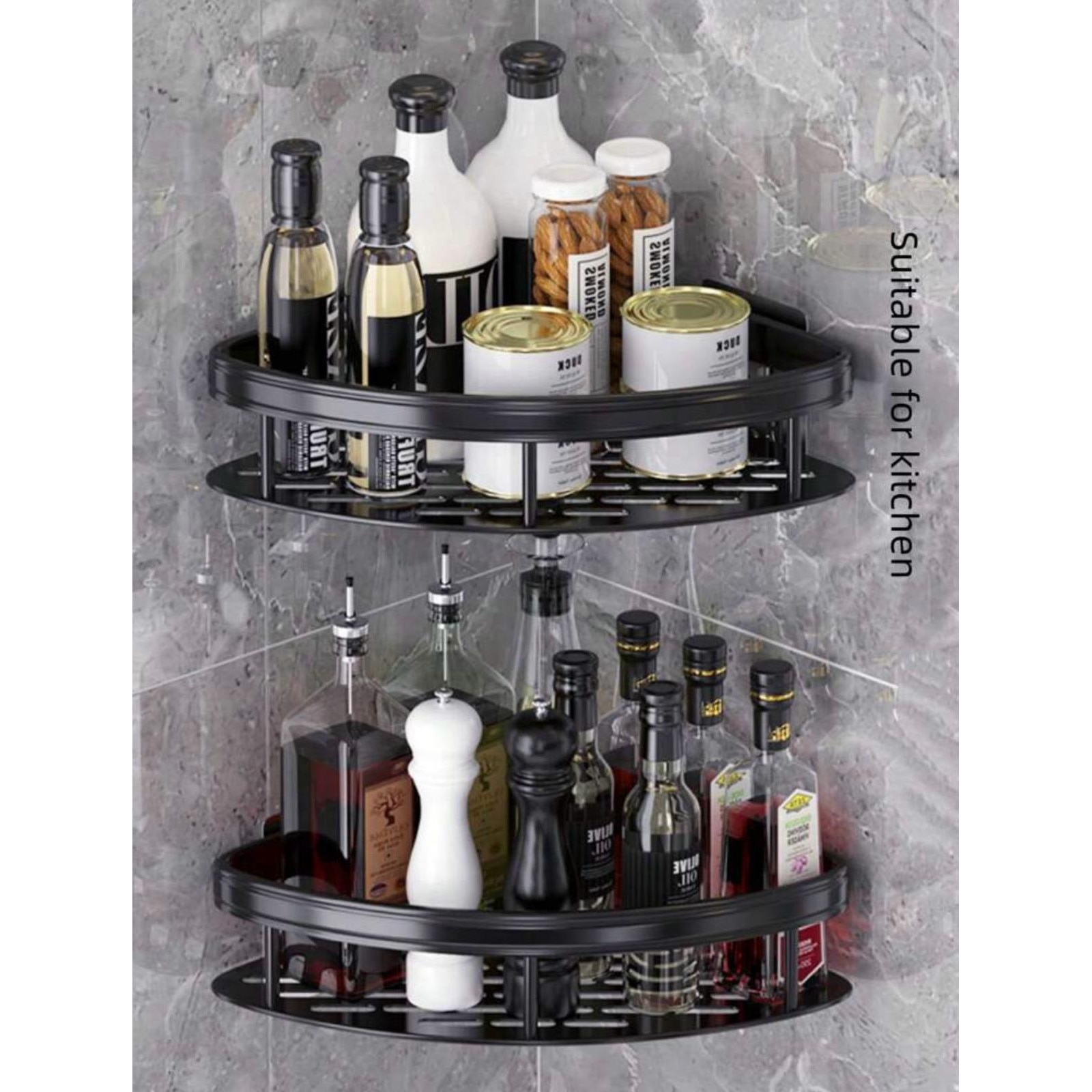 Raft de dus, etajera de colt pentru baie, din aluminiu, pentru depozitare, organizator, set 2 bucati, Negru