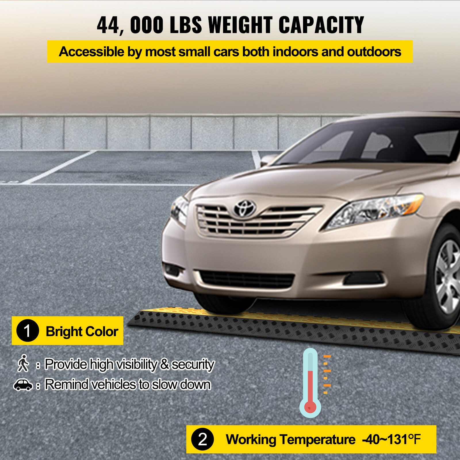 - Max. Capacitate de 44000 lbs: Culoarea traditionala negru+galben ofera o vizibilitate mai mare pe timp de noapte si in medii cu lumina scazuta. Rampa de protectie a cablurilor incorporeaza un design unic in aspectul sau pentru a capta atentia trecatorilor si a soferilor pentru a incetini. Capacitatea de incarcare de 44.000 de livre va asigura ca va puteti conduce masina peste rampa fara a afecta cablurile care circula in interior.