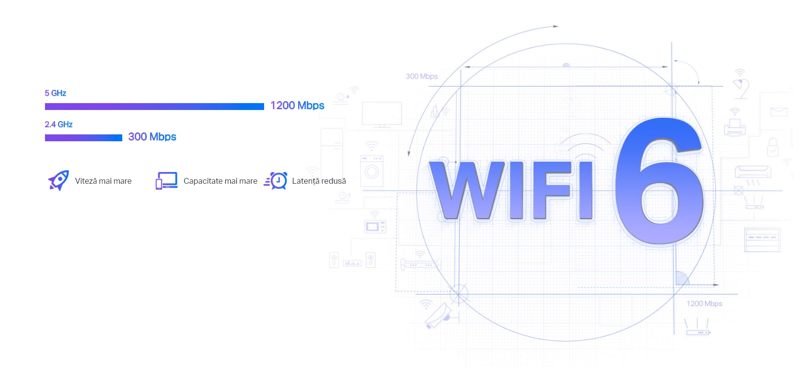 Range Extender TP-Link RE505X Wi-Fi 6 Dual-Band Gigabit AX1500, tehnologie OneMesh, Adaptive Path, Mod High Speed, Mod Access Point