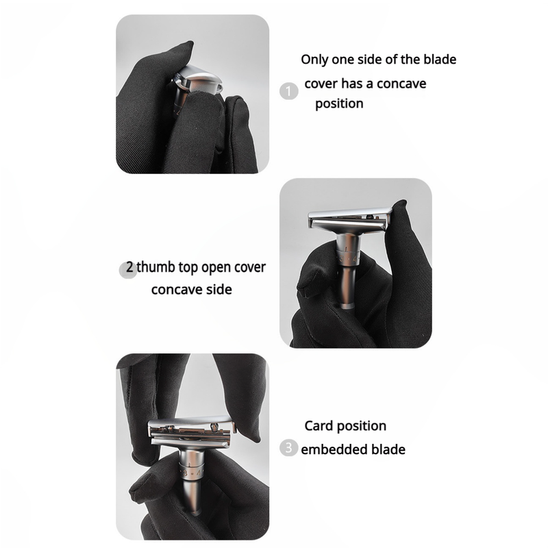 Ras de siguranta T, aparat de ras clasic, 1 suport pentru ras + 5 lame, argintiu/negru