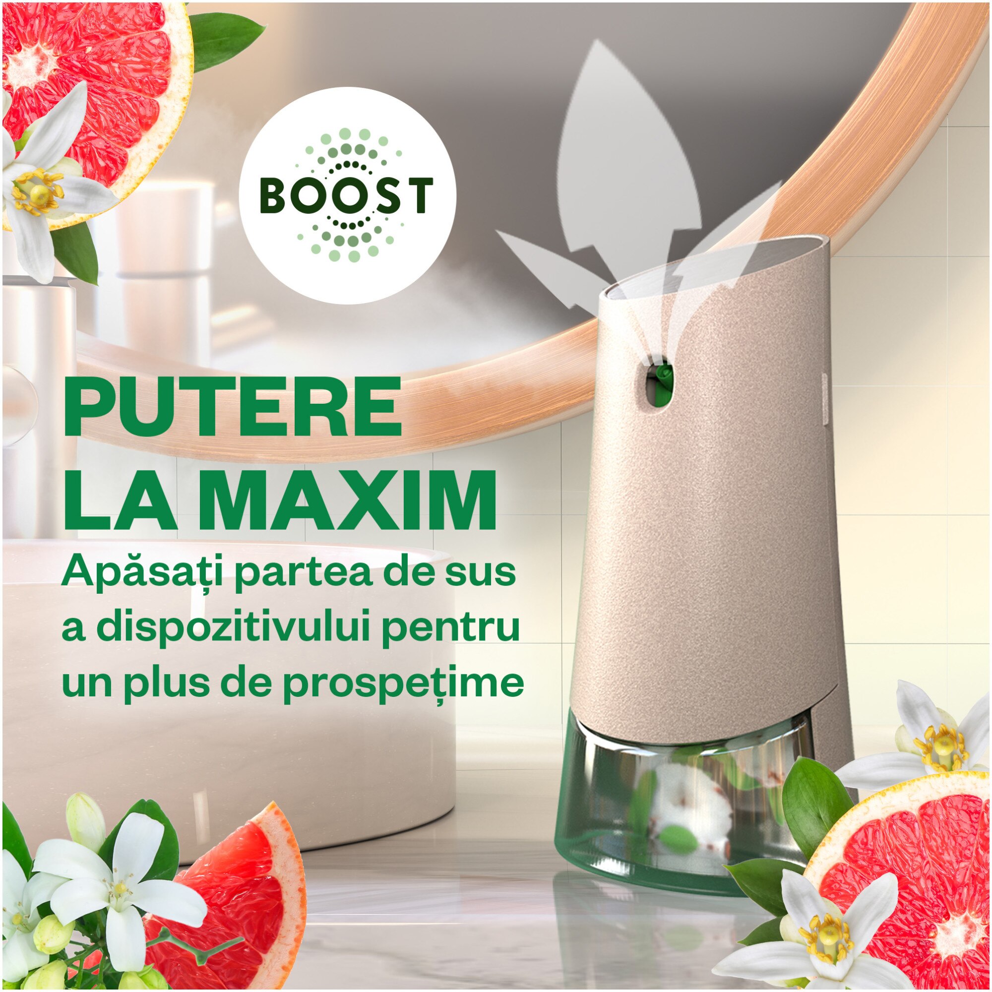 Rezerva odorizant de camera spray automat fara aerosoli Air Wick, Grepfrut si Flori de portocal, 228 ml