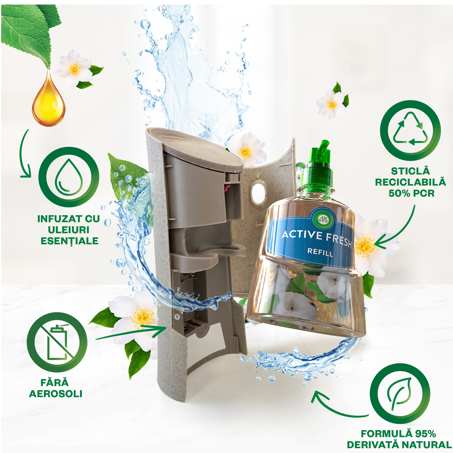 Bumbac Proaspăt: Odorizant de camera kit spray automat fara aerosoli Air Wick, Bumbac Proaspat, 228ml - eMAG. Ro