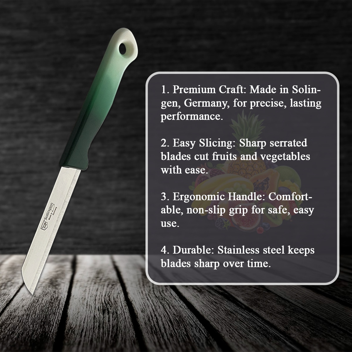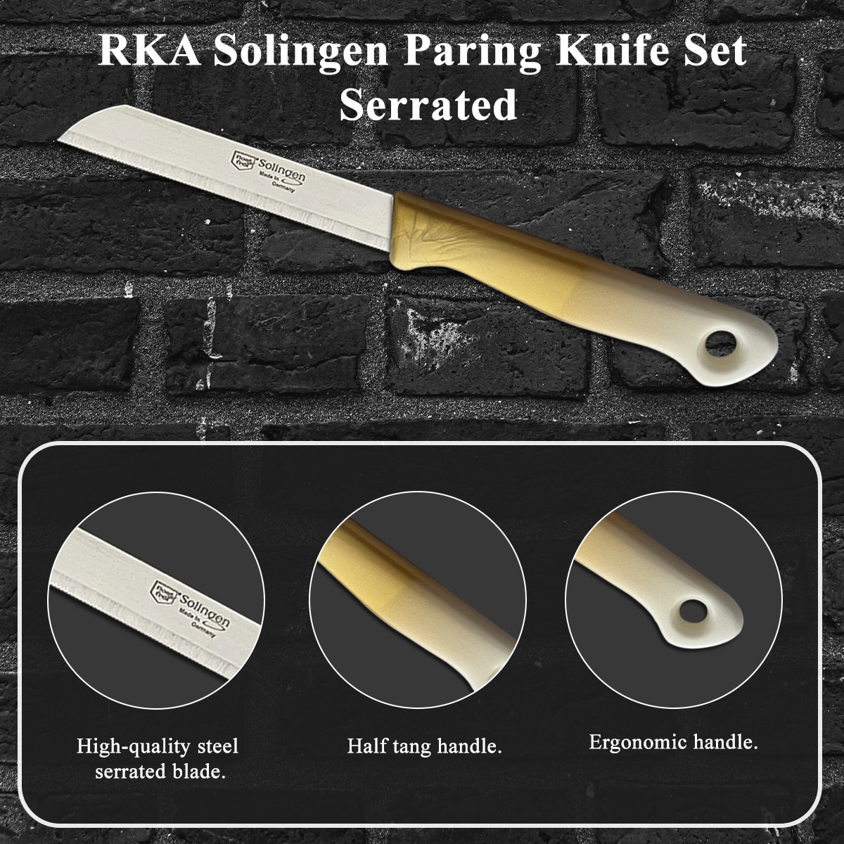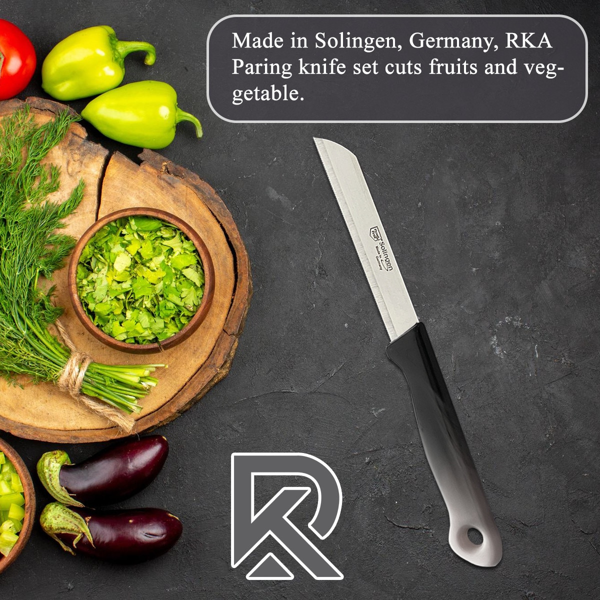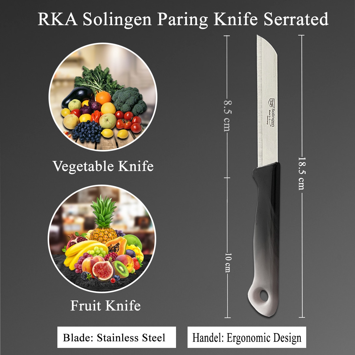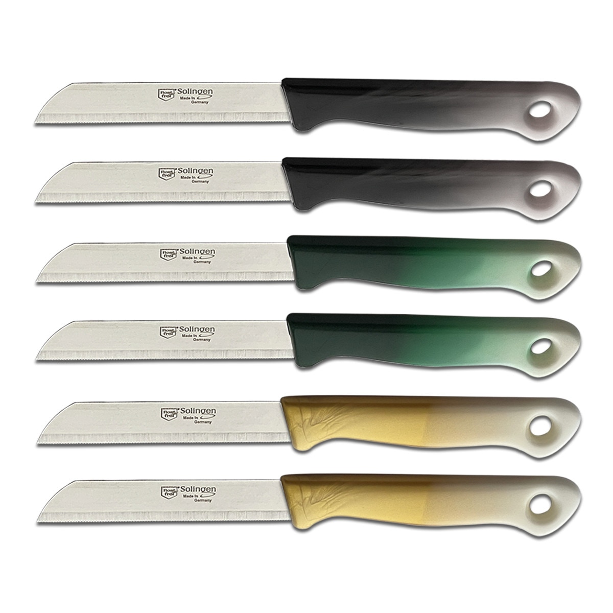RKA Set de 6 cutite Solingen – Cutit pentru legume, cutit de curatat, cutit pentru fructe, cutit universal cu lama zimtata – multicolor, fabricat in Germania