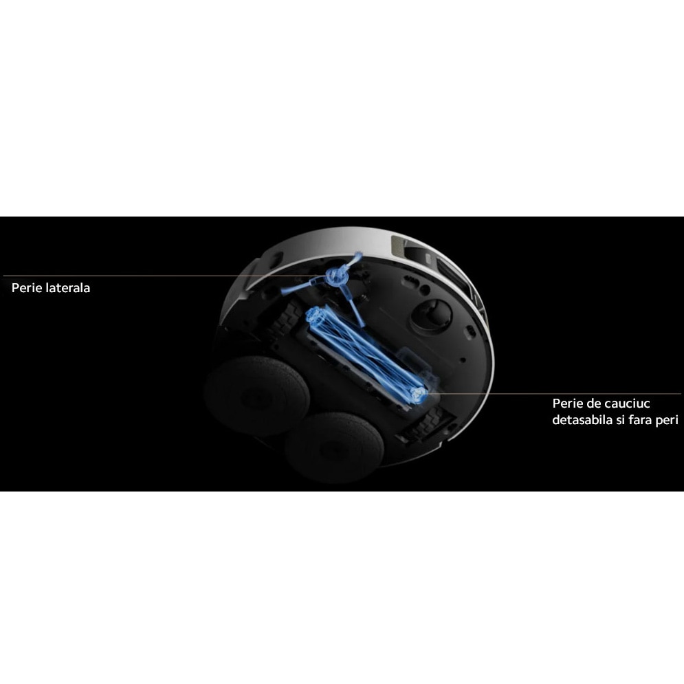 Puternicul sistem de aspirare Vormax™ are o putere de aspirare de 7.000 Pa pentru o aspirare remarcabila. Peria de cauciuc ridicabila faciliteaza descurcarea parului, in timp ce recunoasterea cu ultrasunete a covoarelor si tehnologia de indepartare cu mop se combina pentru o curatare imbunatatita a covoarelor si carpetelor .